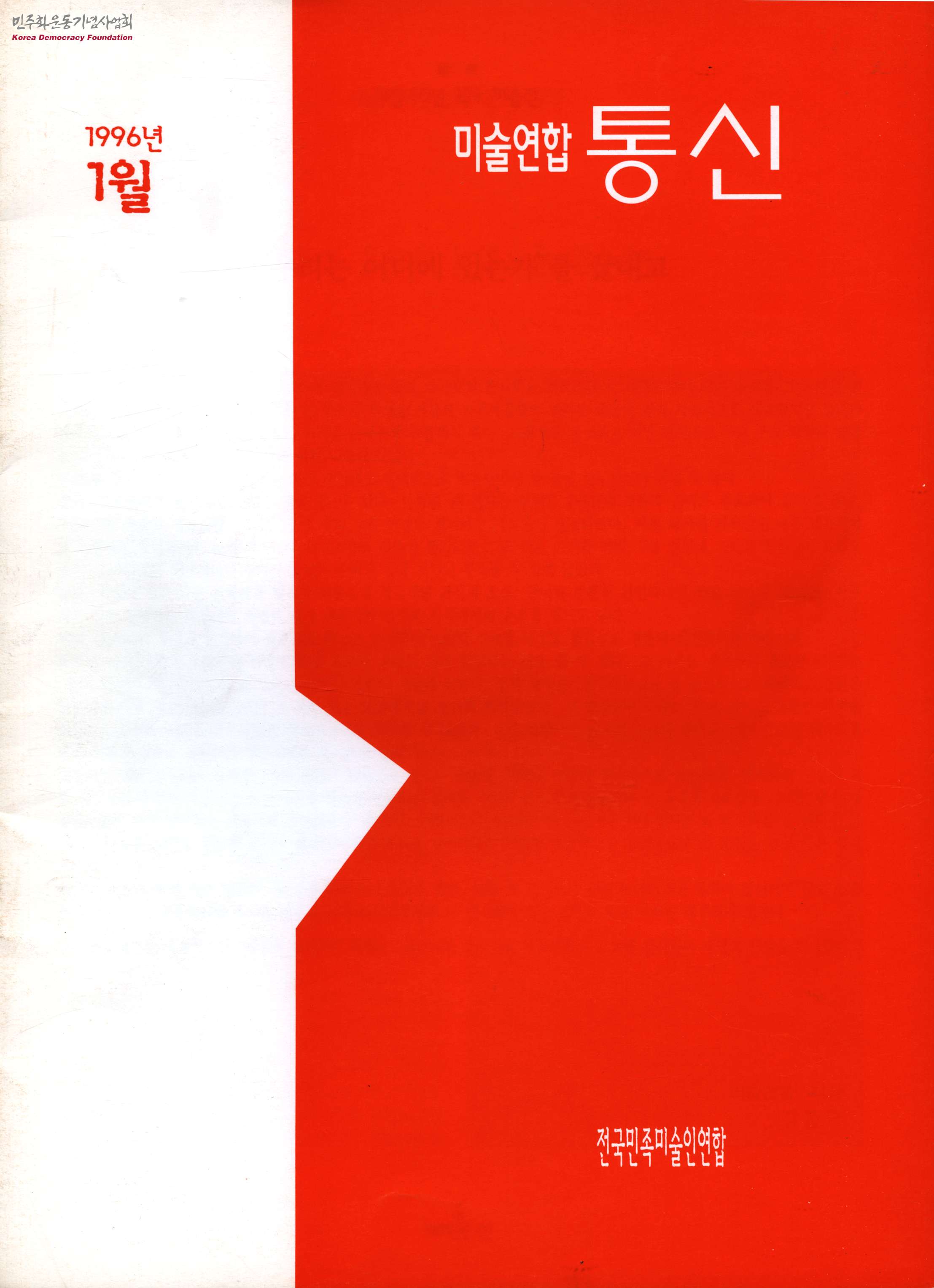 - 1996년 1월 1일 전국민족미술인연합에서 발간한 미술연합 통신 제3호로 목차는 다음과 같이 구성되어 있음 - 특집 해방 50년 역사 미술전 / '우리는 어디에 있는가'를 끝내고 역사를 가르칠까 감성을 좇을까 그림으로 느꼈던 해방 50년 - 전시평 / 광주 비엔날레 착잡한 명암 광주 통일 미술제 전국 연대속에 부활하는 광주정신 - 탐방 전쟁 승리 50년 전 중국 참가기 / 정의∙평화-반파시스트 전쟁승리 50주년 기념 국제미술전람회에 다녀와서 - 알림∙복합문화공간 「이십일세기」로 부터