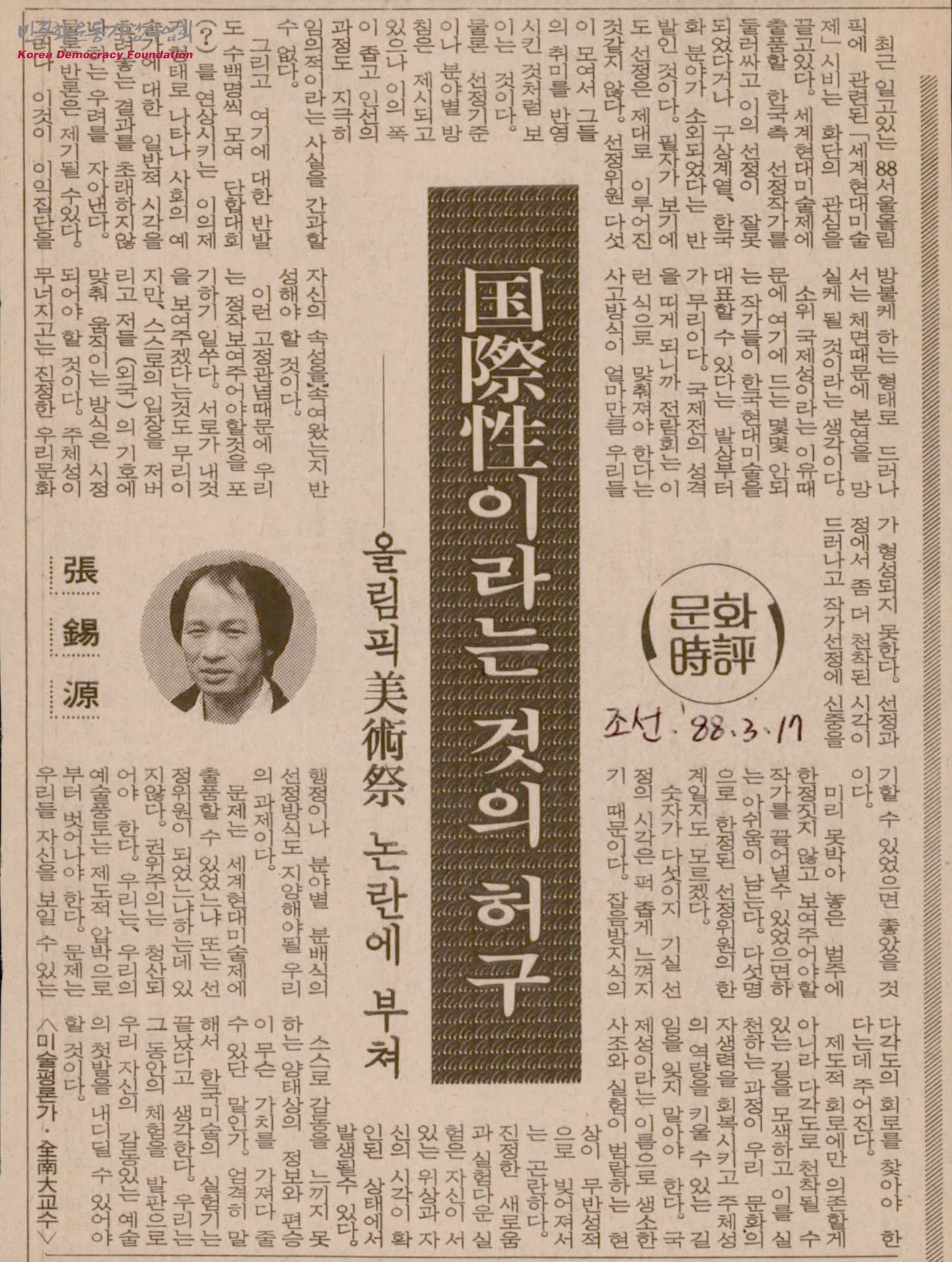 [신문스크랩]國際性(국제성)이라는 것의 허구-올림픽 美術祭 논란에 부쳐