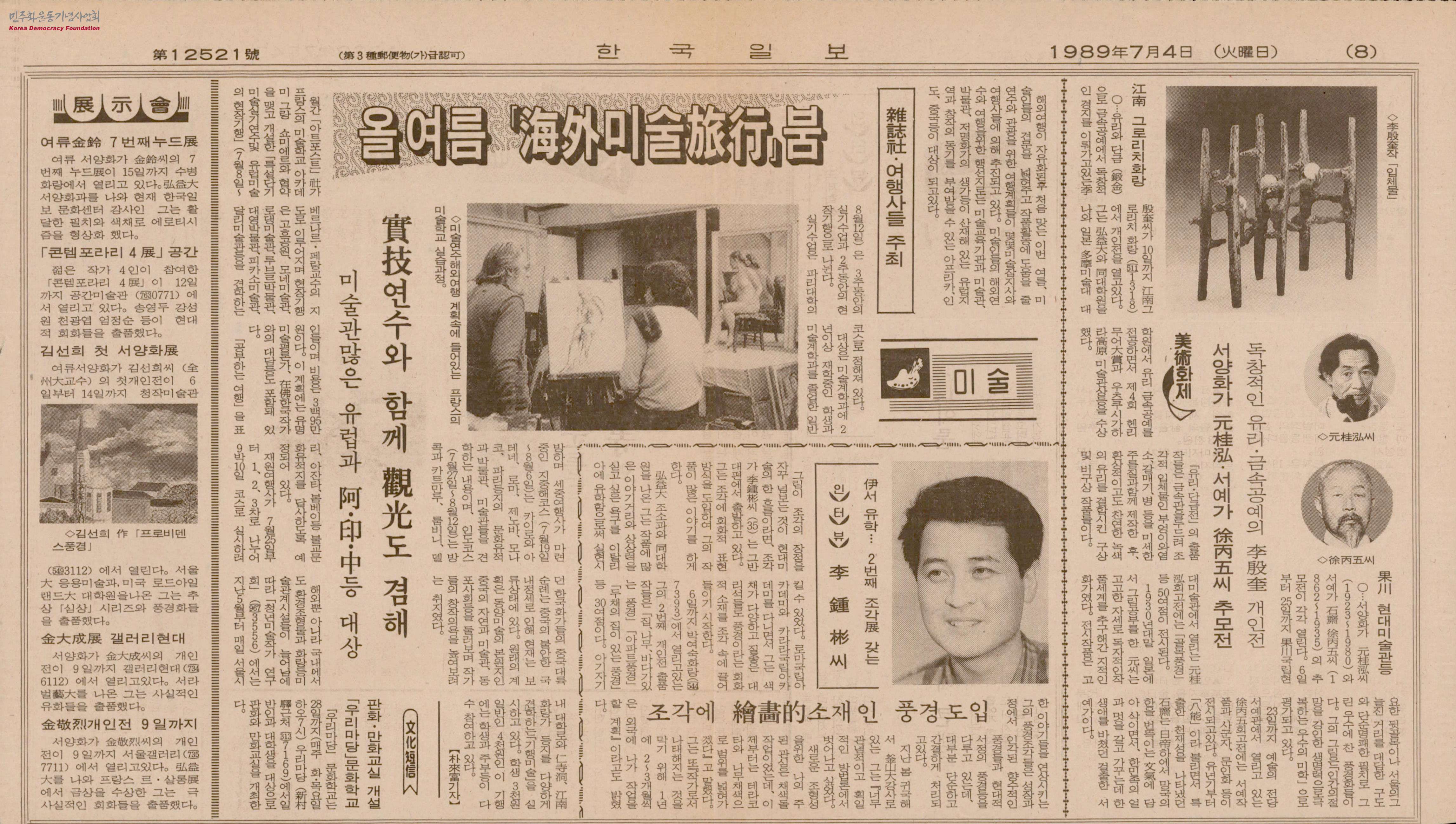 - 해외여행이 자유화되고 처음 맞는 여름, 미술인들은 견문을 넓히고 작품활동에 도움을 줄 연수와 관광을 위한 여행을 계획중이며, 여행을 위한 행선지로는 미술교육기관과 미술관, 박물관, 저명한 화가의 생가가 산재해 있는 유럽 지역, 창작의 동기를 부여받을 수 있는 아프리카, 인도, 중국 등이 대상이 되고 있다는 내용의 신문스크랩