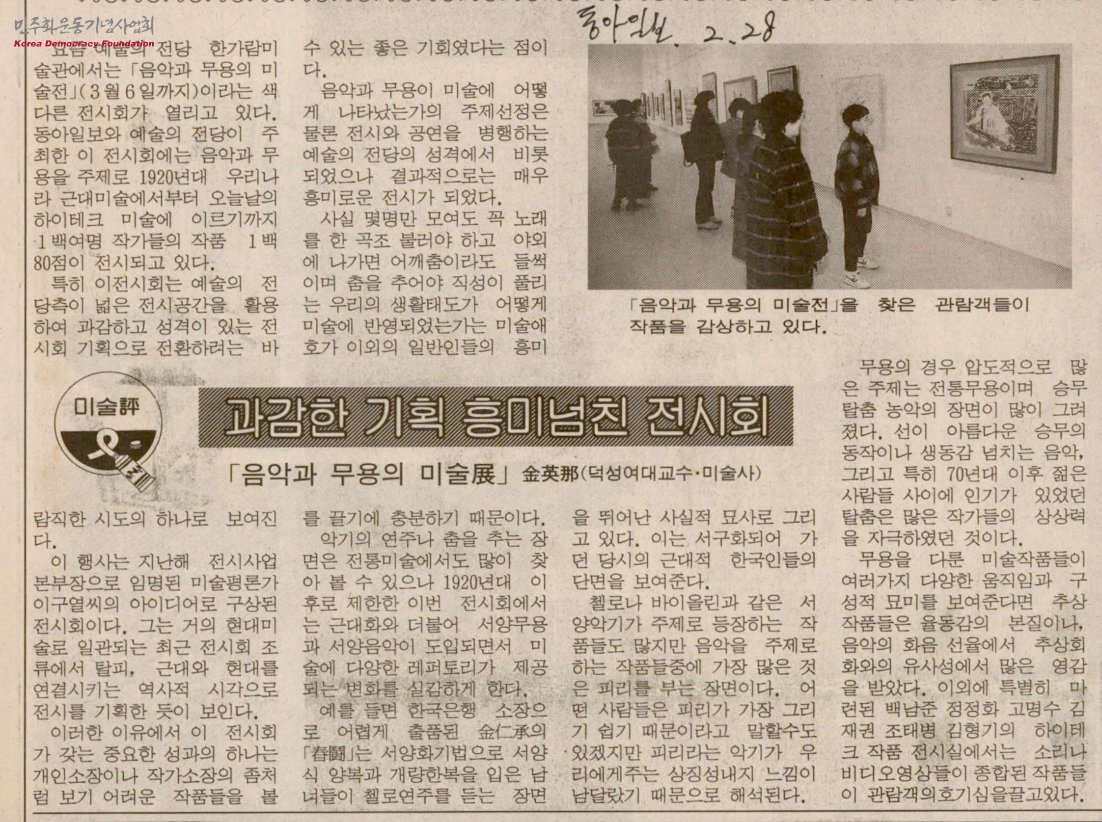 [신문스크랩]과감한 기획 흥미넘친 전시회 「음악과 무용의 미술展」