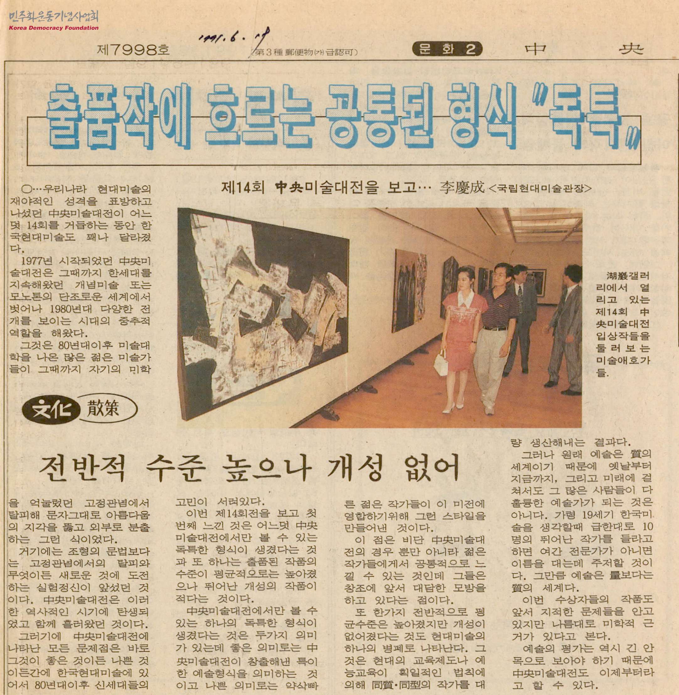 [신문스크랩]출품작에 흐르는 공통된 형식 "독특"-제14회 中央(중앙)미술대전을 보고