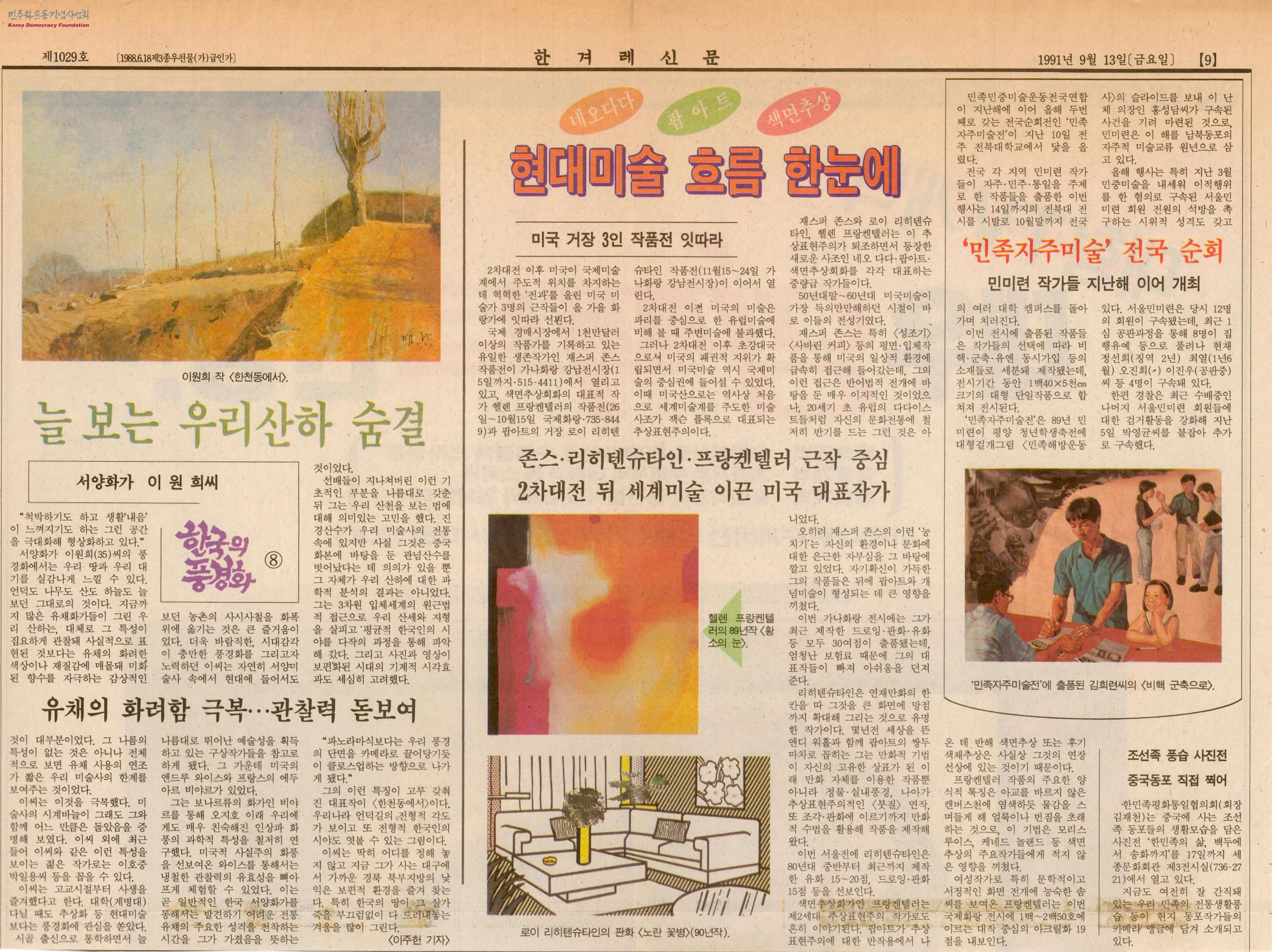 - 민족민중미술운동전국연합의 두번째 전국순회전인 '민족자주미술전이 전북대학교를 시작으로 각 지역 민미련 작가들이 자주, 민주, 통일을 주제로 한 작품들을 작가들이 10월말까지 대학 캠퍼스를 순회하며 치뤄지고, 민족자주미술전은 89년 민미련이 평양 청년학생축전에 <민족해방운동사>를 보낸 홍성담의 구속된 사건을 기려 마련되었다는 전시 배경이 담겨 있는 신문스크랩