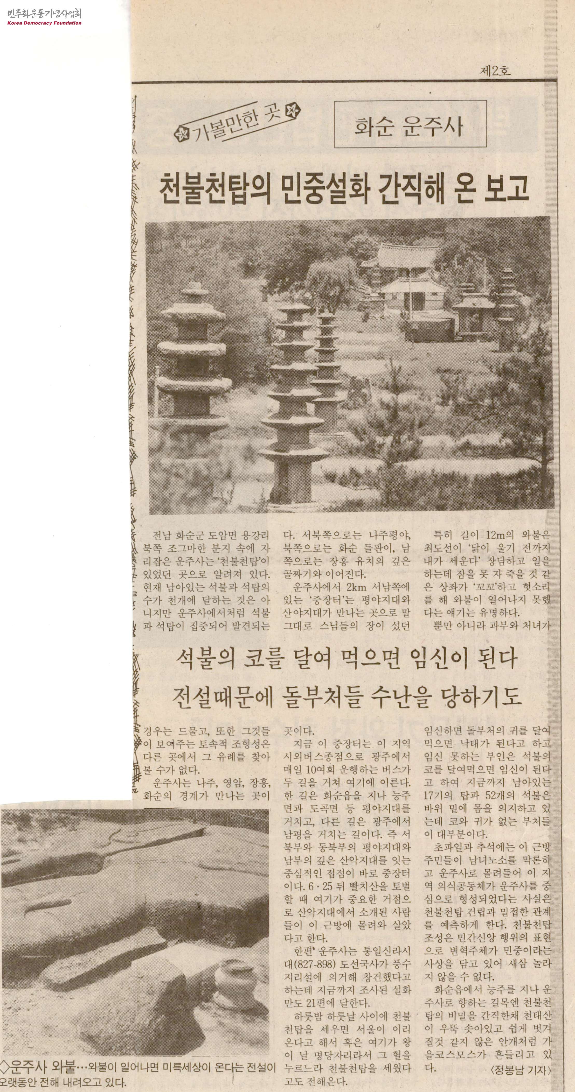 [신문스크랩]화순 운주사-천불천탑의 민중설화 간직해 온 보고
