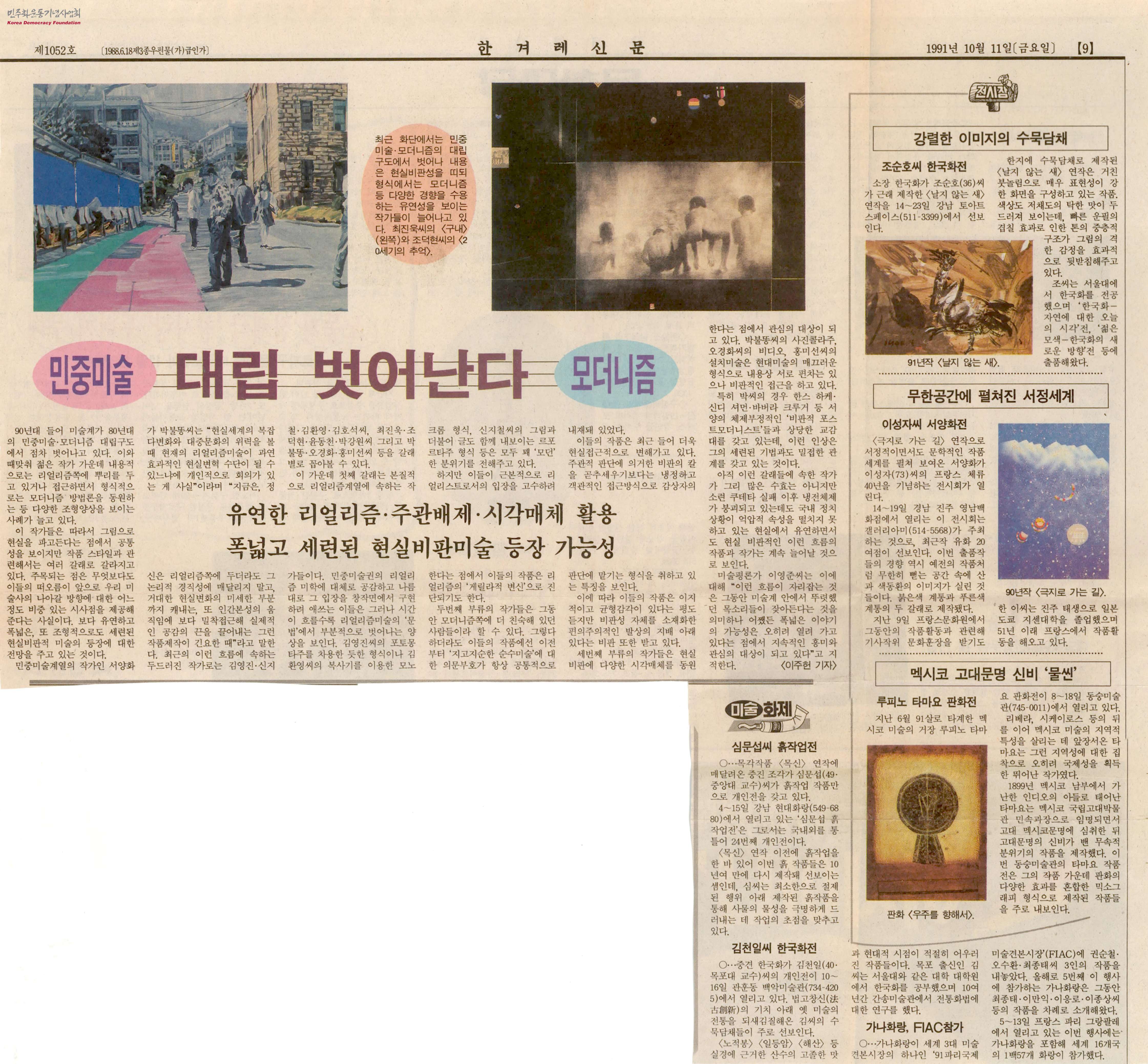 [신문스크랩]민중미술 모더니즘 대립 벗어난다-우연한 리얼리즘·주관배제·시각매체 활용 폭넓고 세련된 현실비판미술 등장 가능성