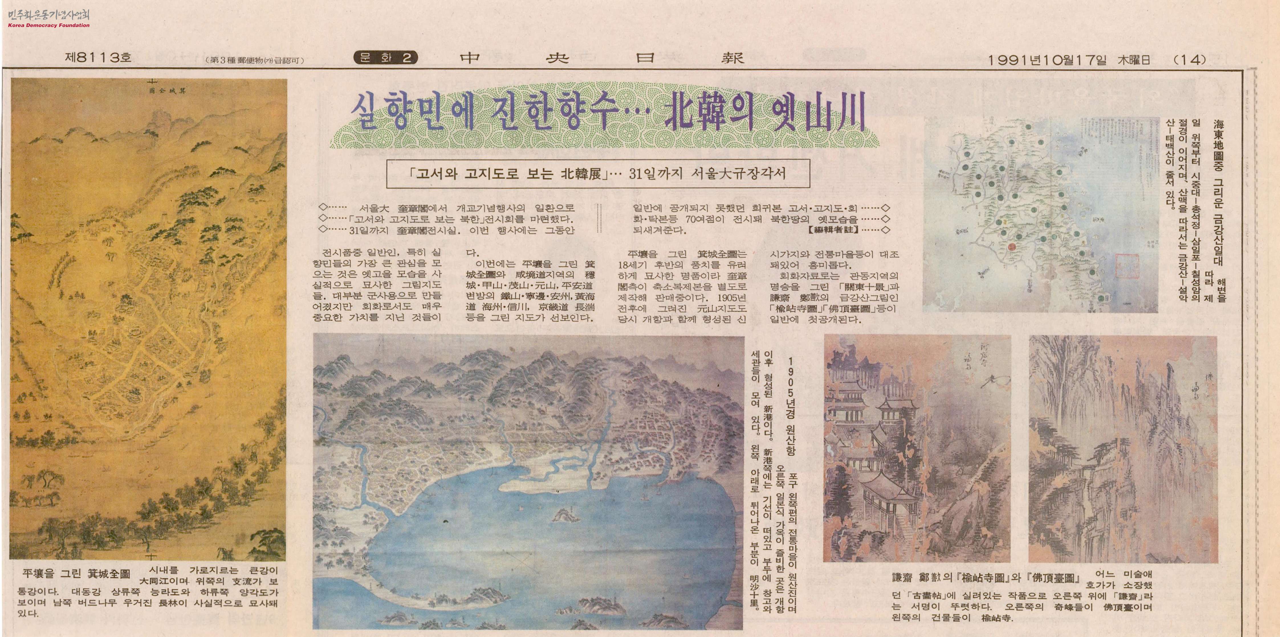 [신문스크랩]실향민에 진한향수···北韓(북한)의 옛山川(산천)-「고서와 고지도로 보는 北韓展(북한전)」··· 31일까지 서울大규장각서