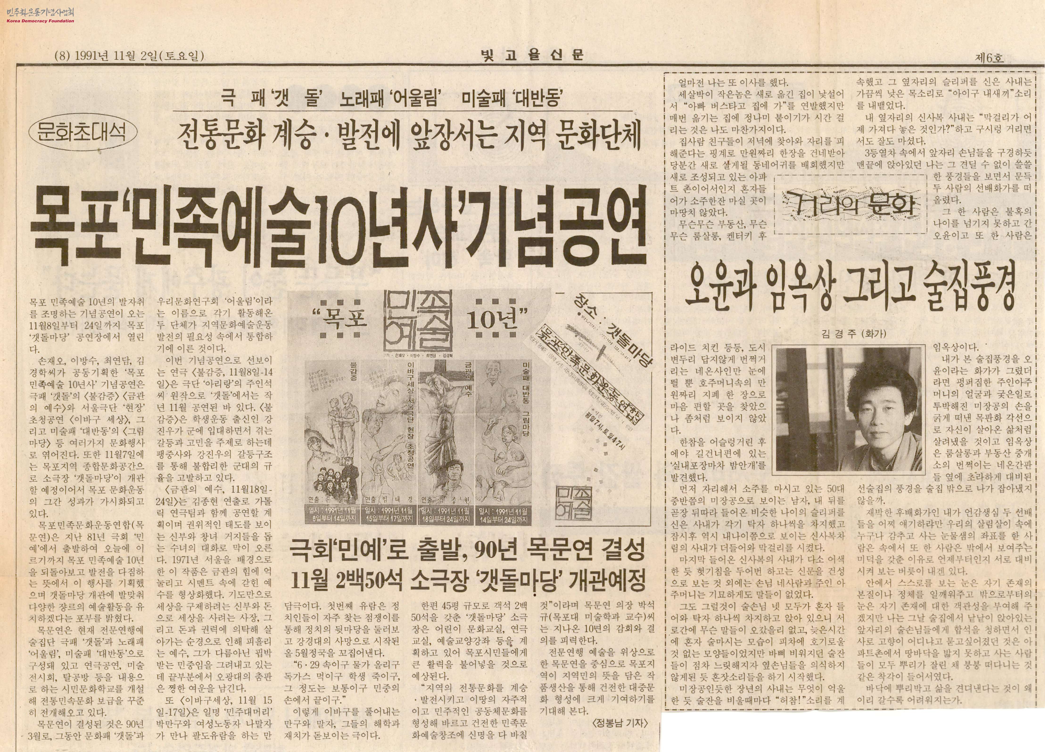 [신문스크랩]극패'갯돌 노래패'어울림' 미술패'대반동' 전통문화 계승·발전에 앞장서는 지역 문화단체-목포 '민족예술10년사' 기념공연