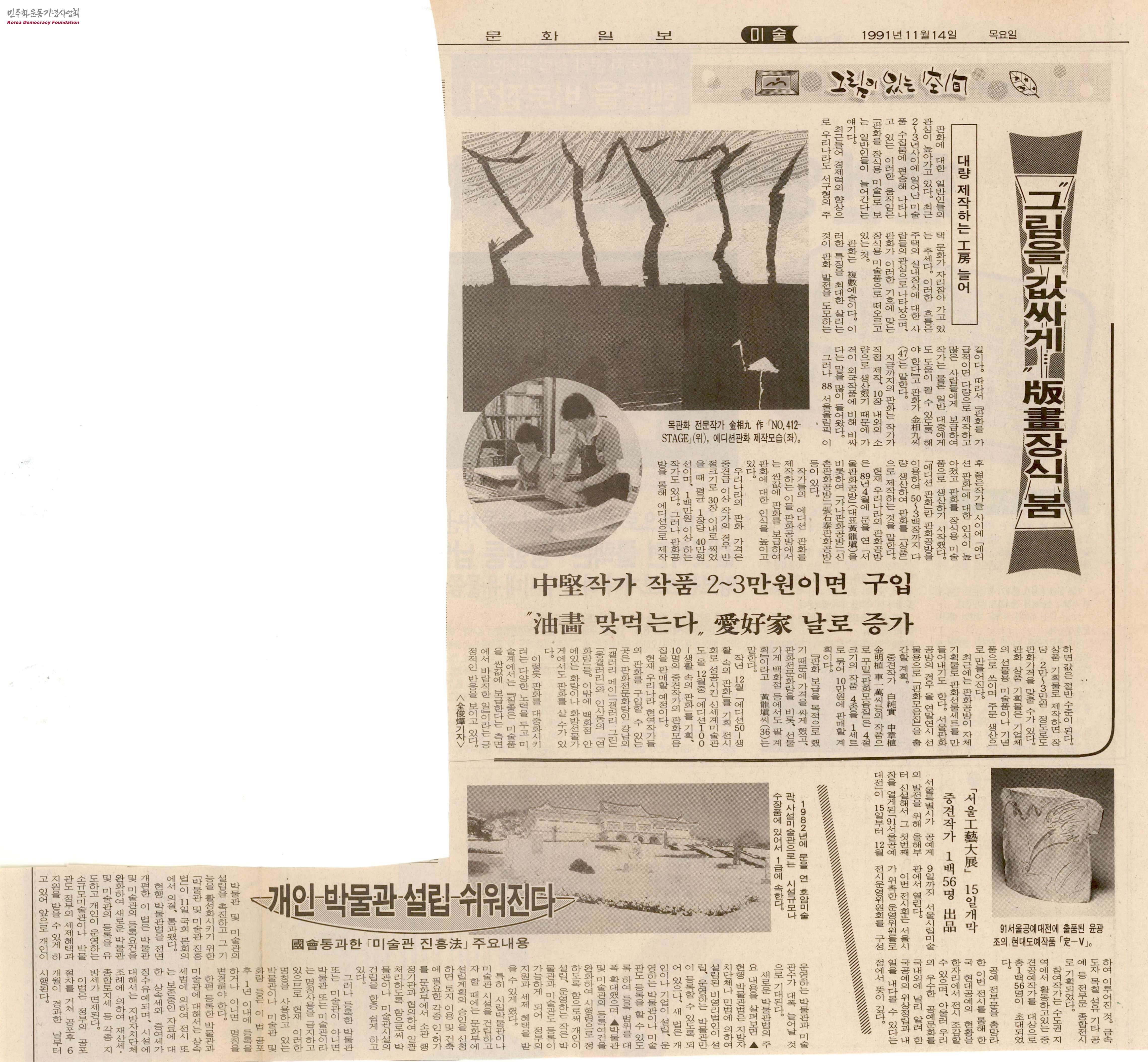 [신문스크랩]그림을 값싸게···版畵(판화)장식 붐-대량 제작하는 工房(공방) 늘어