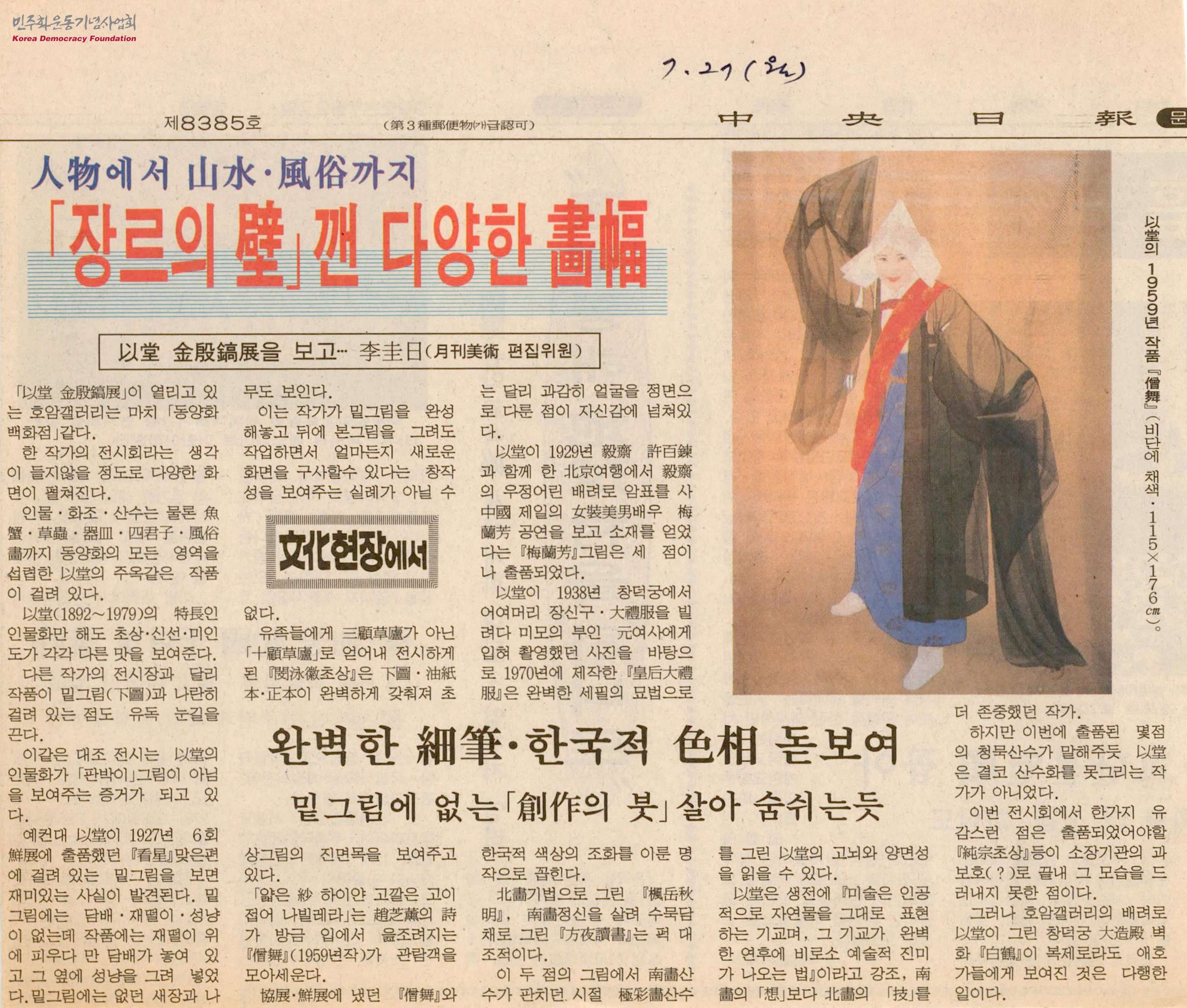 [신문스크랩]人物(인물)에서 山水(산수)·風俗(풍속)까지 「장르의 壁(벽)」깬 다양한 畵幅(화폭)
