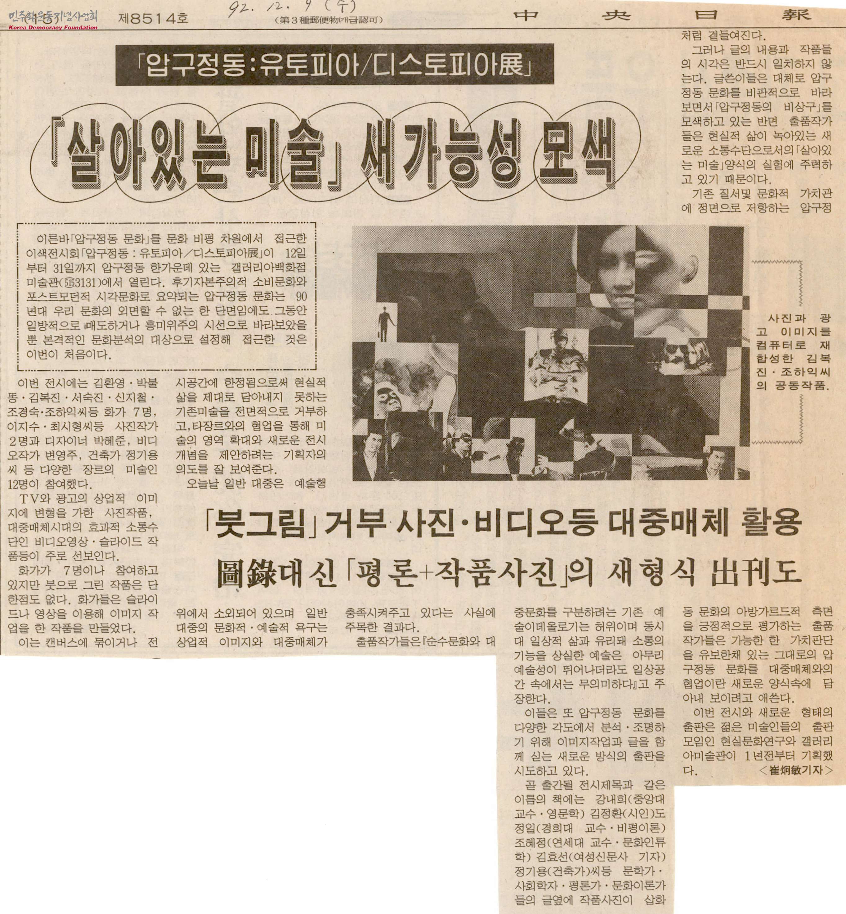 [신문스크랩]「압구정동: 유토피아/디스토피아展(전)」-「살아있는 미술」 새 가능성 모색