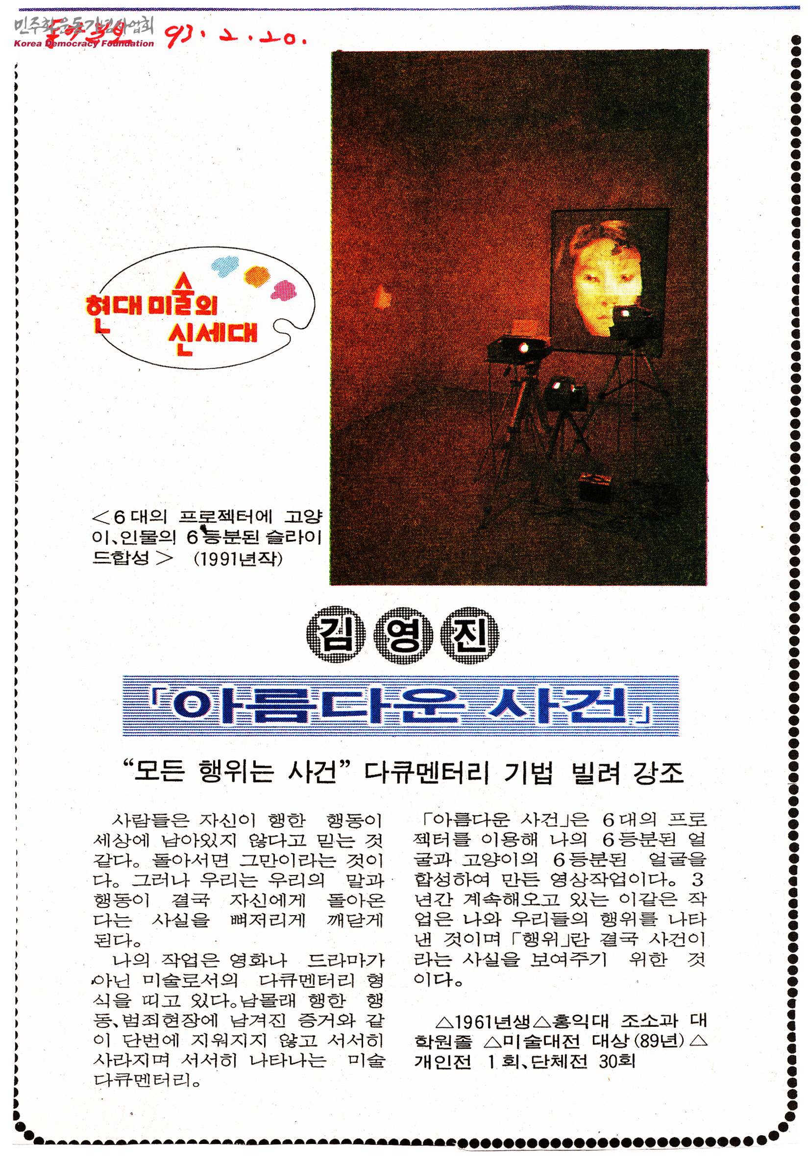 [신문스크랩]현대미술의 신세대-김영진「아름다운 사건」