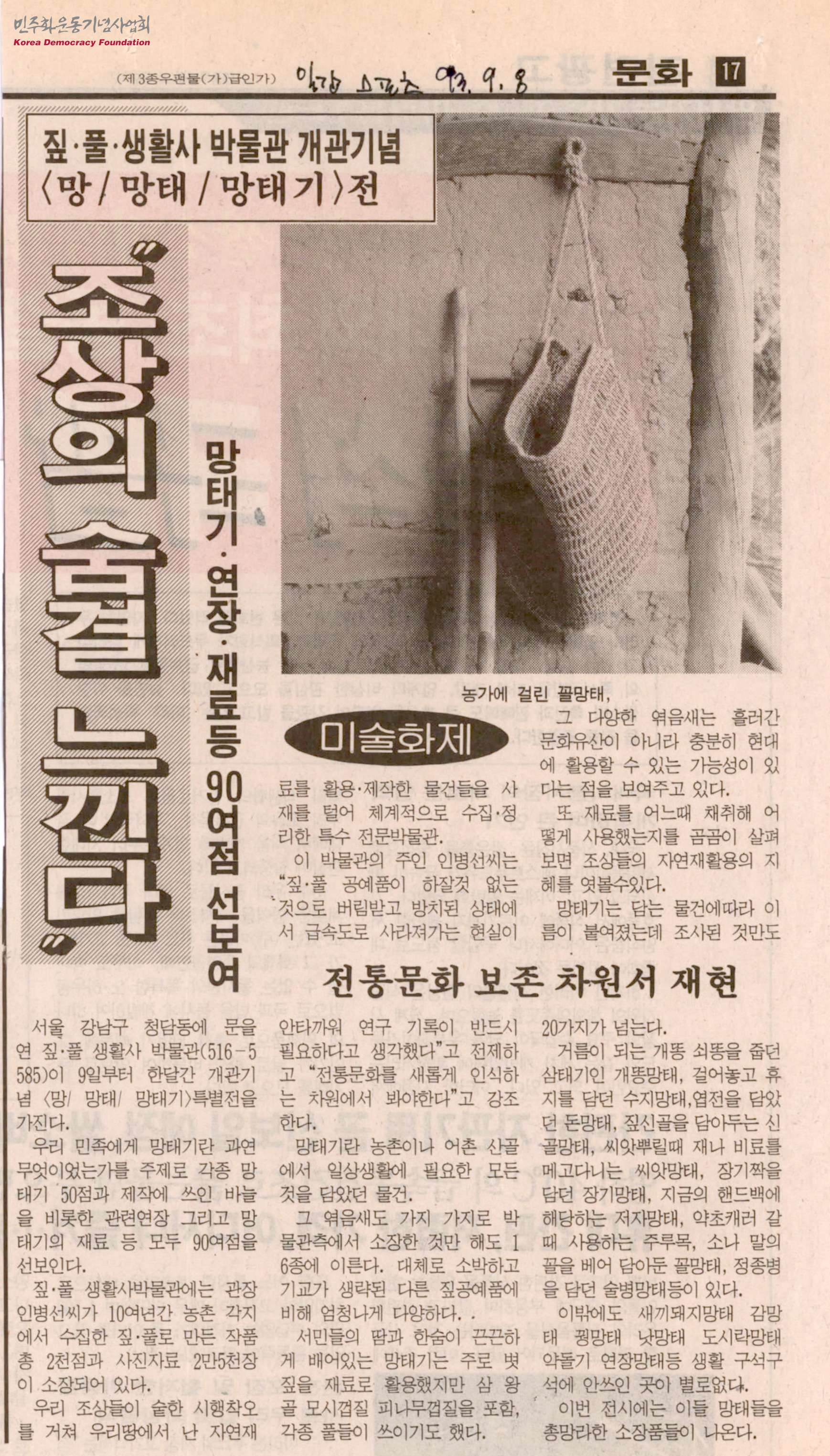 [신문스크랩]짚∙풀∙생활사 박물관 개관기념 <망/망태/망태기>전