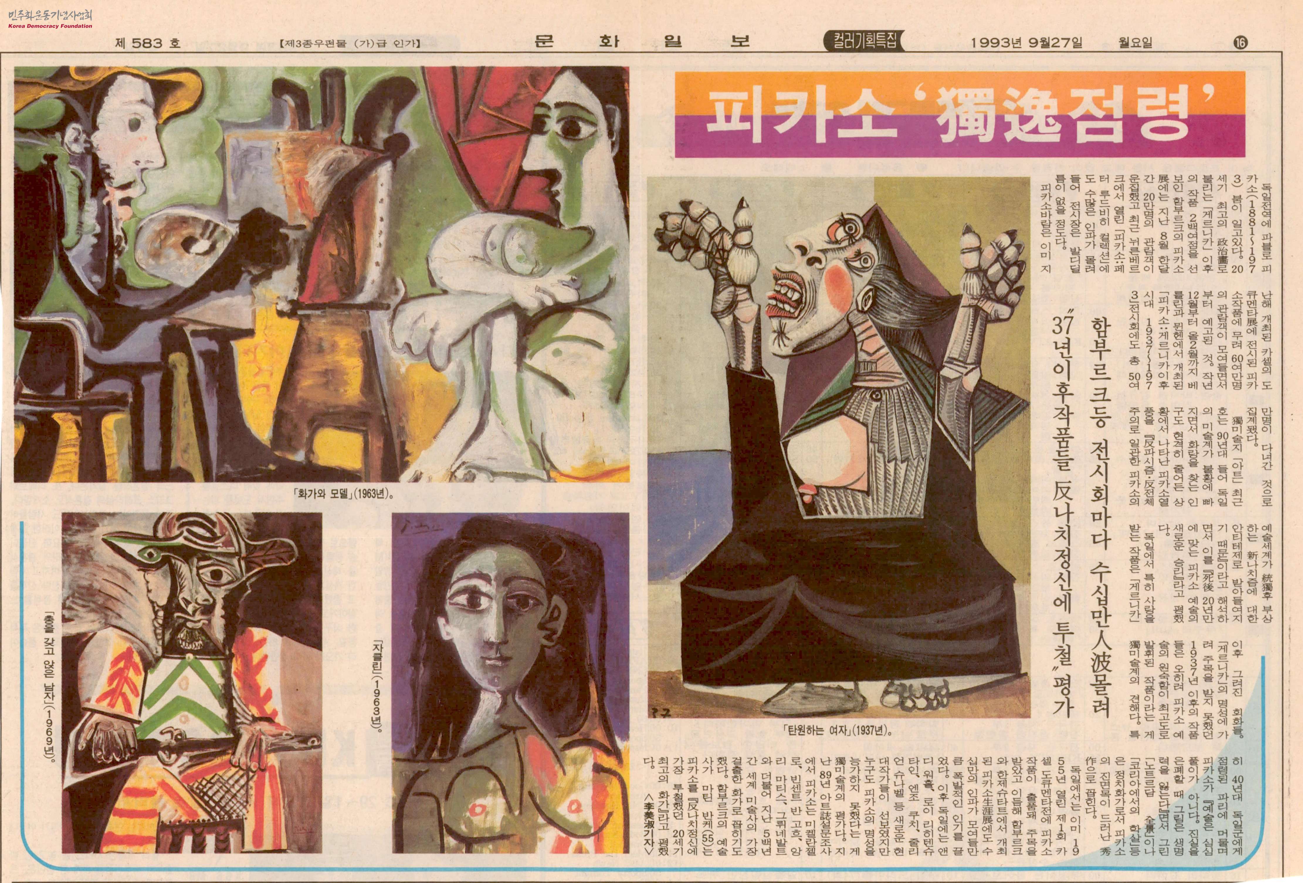 [신문스크랩]피카소 '獨逸(독일)점령'