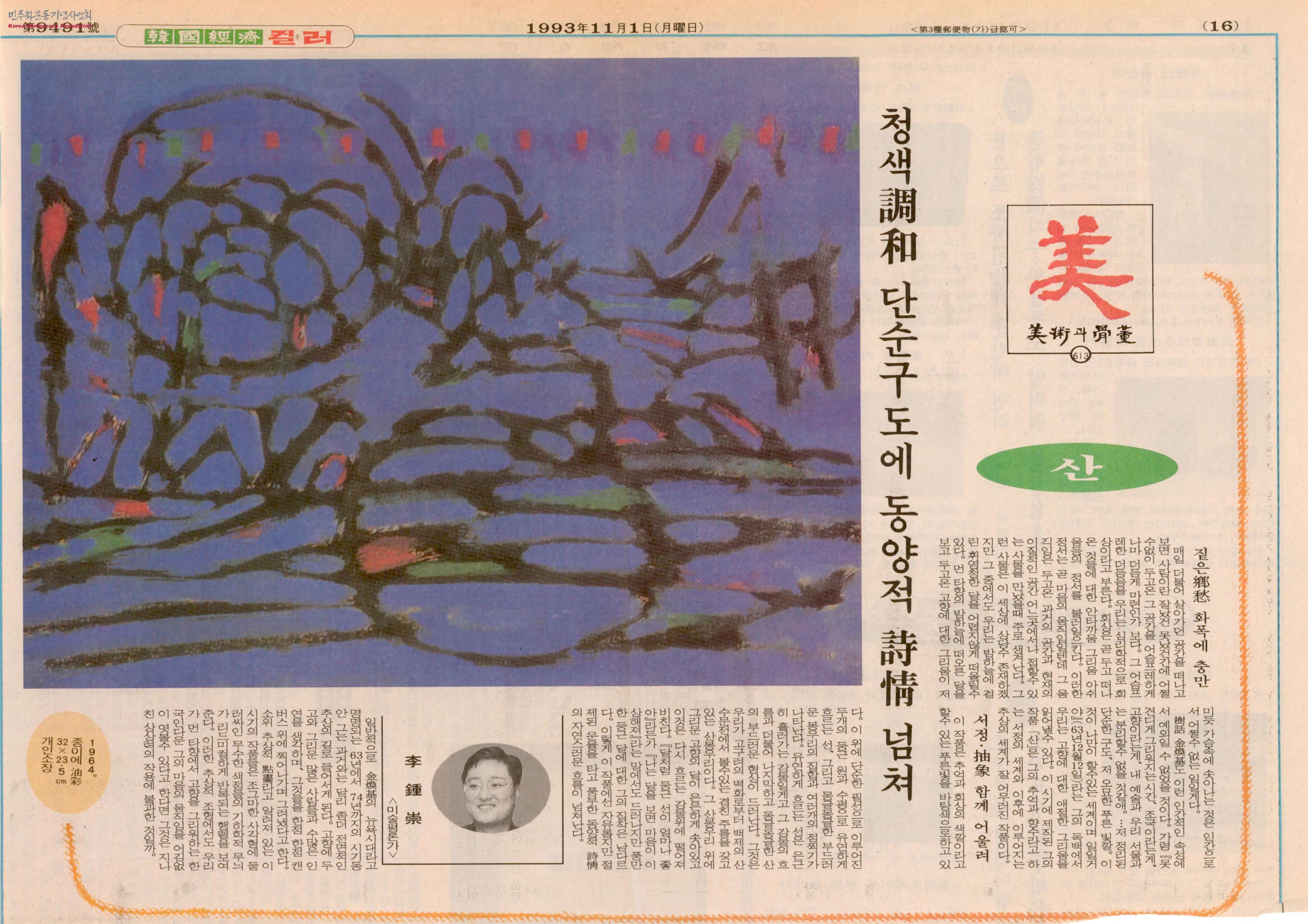 [신문스크랩] 산 청색調和(조화) 단순구도에 동양적 時情(시정) 넘쳐