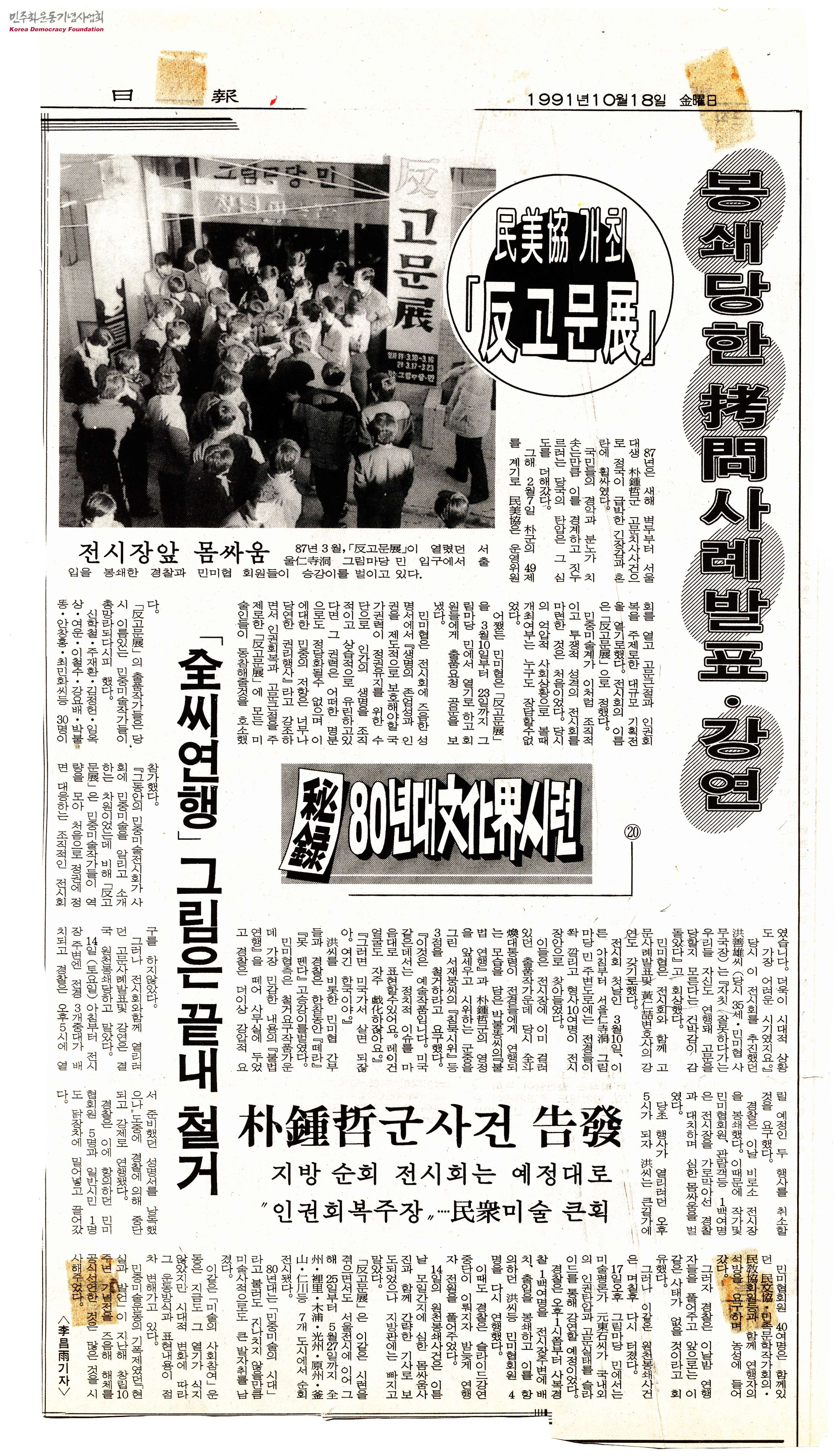 [신문스크랩]80년대文化界(문화계)시련-民美協(민미협)개최 『反고문展』