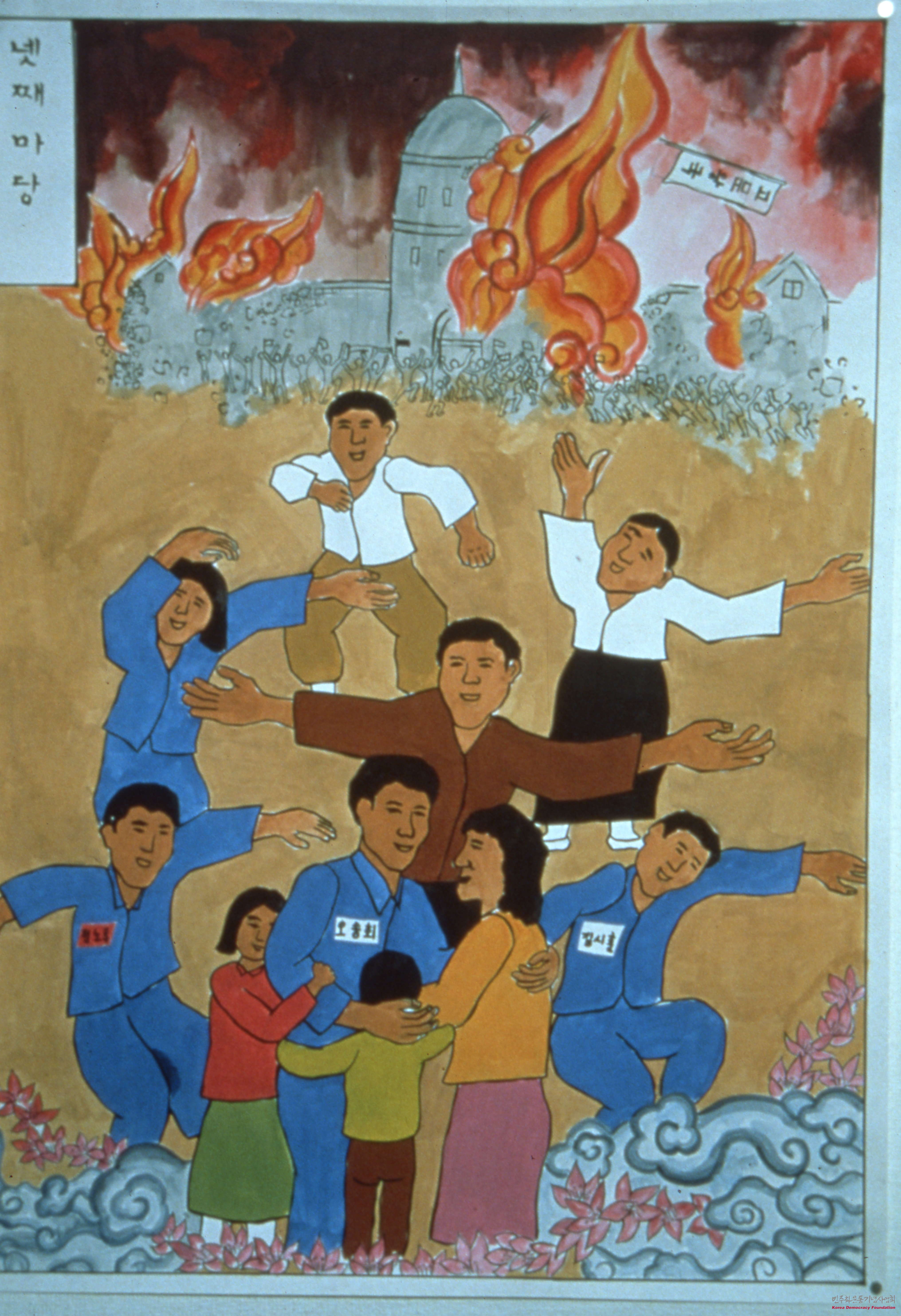 - 송만규의 작품 모음이며, 당시 사회상을 비판하는 내용의 작품 2점으로 불타는 조선총독부 앞에 국보법으로 연행되었던 오송희와 김시훈 등의 인사들이 가족들과 만나는 모습, 사람들을 고문하는 고문업자의 모습이 담겨있고 임안산 자락에 선 이의장이라는 인물이 담긴 93년작 인물화 등 4점이 담겨 있음