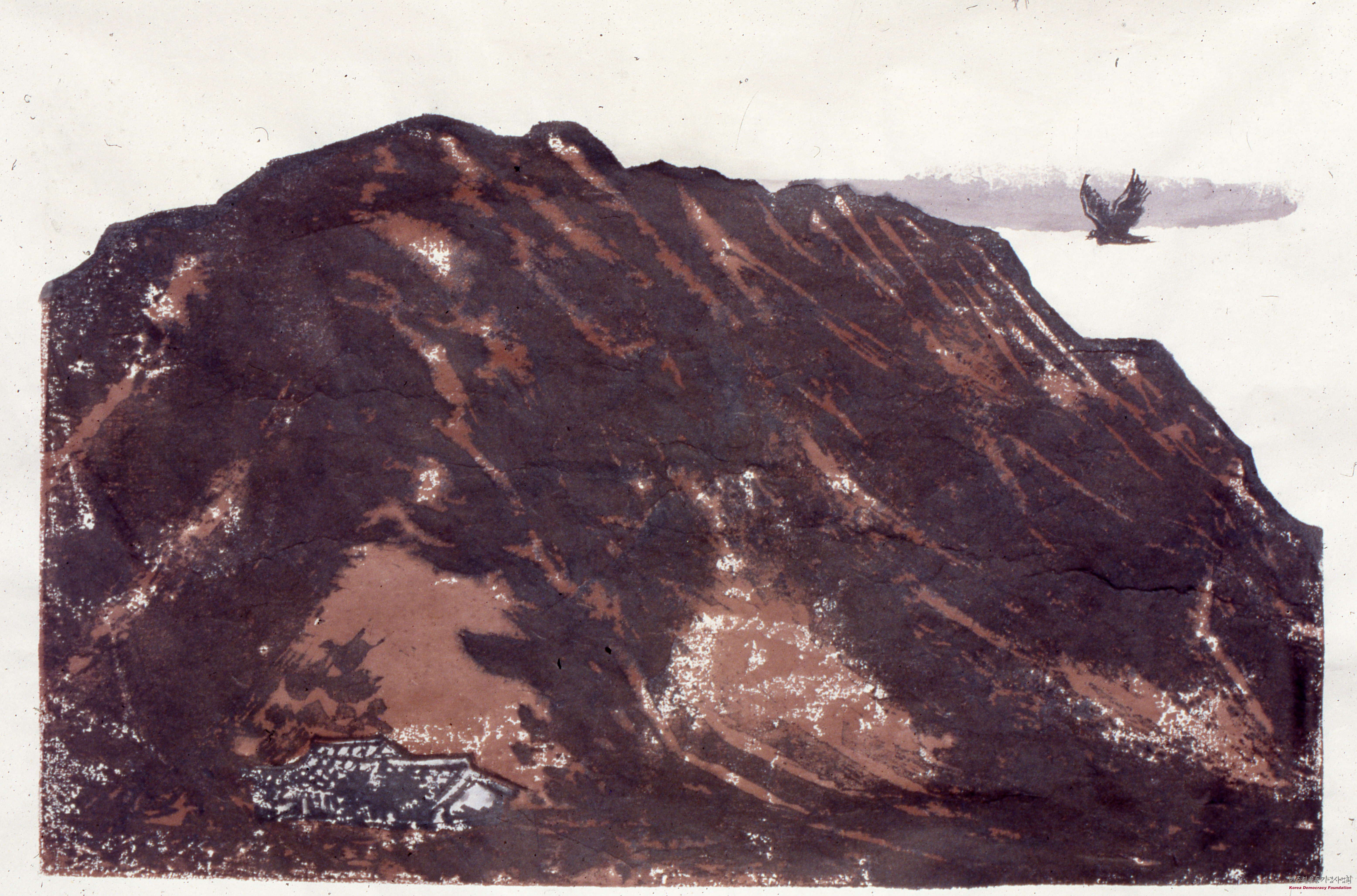 - 이준석 작가의 그림을 담아 낸 슬라이드 필름으로, 높은 산과 까마귀, 그리고 그 밑에 기와집의 모습을 그린 작품이 담겨 있음