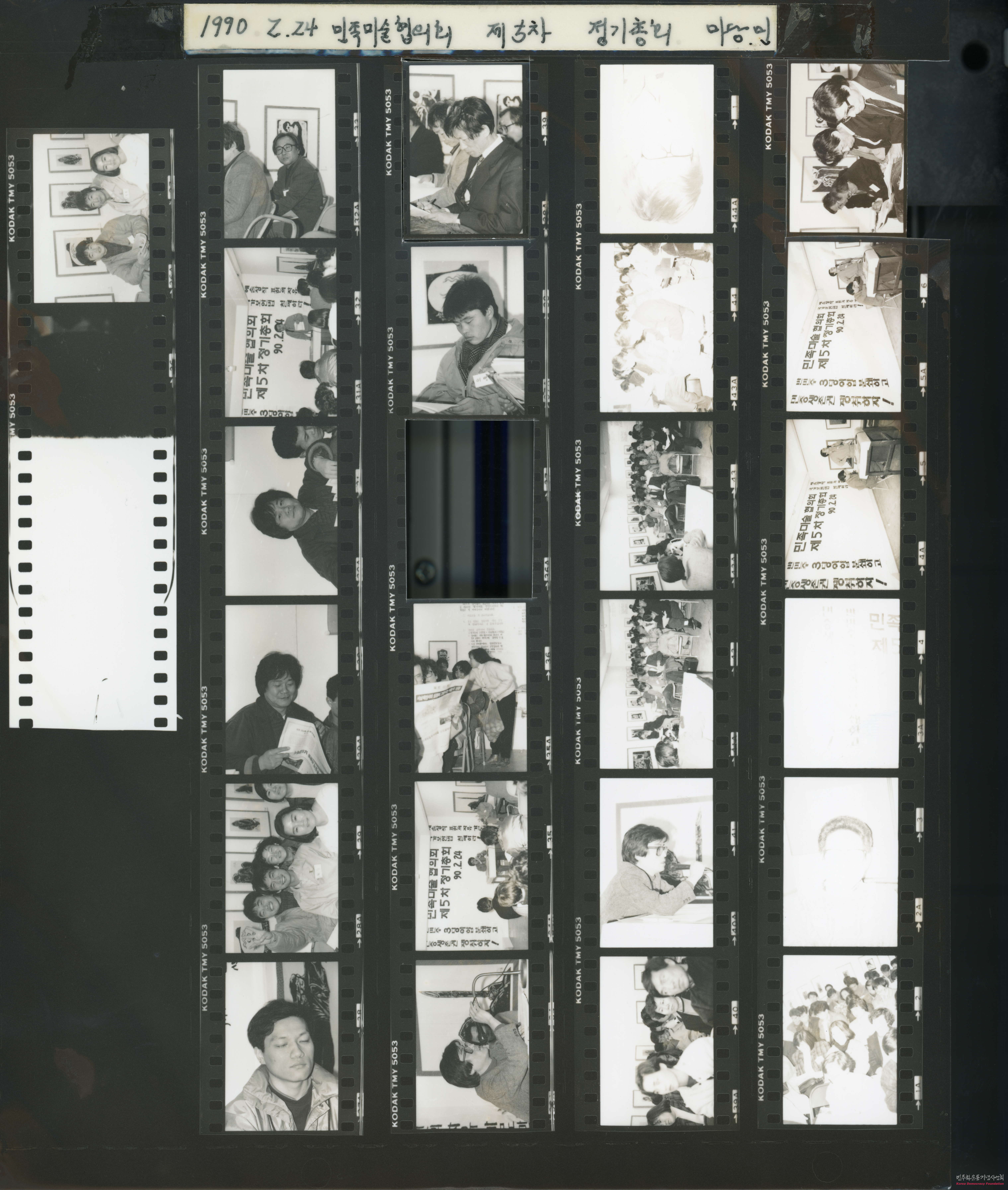- 1990년 2월 24일 그림마당 민에서 개최한 민족미술협의회 제5차 정기총회 필름으로, 이 총회에서는 반민주 3당 야합을 분쇄하고 민중생존권을 쟁취하기 위한 방안, 예술창작 표현의 자유를 가로막는 국가보안법 철폐를 위한 방안 등에 관하여 토의하였음