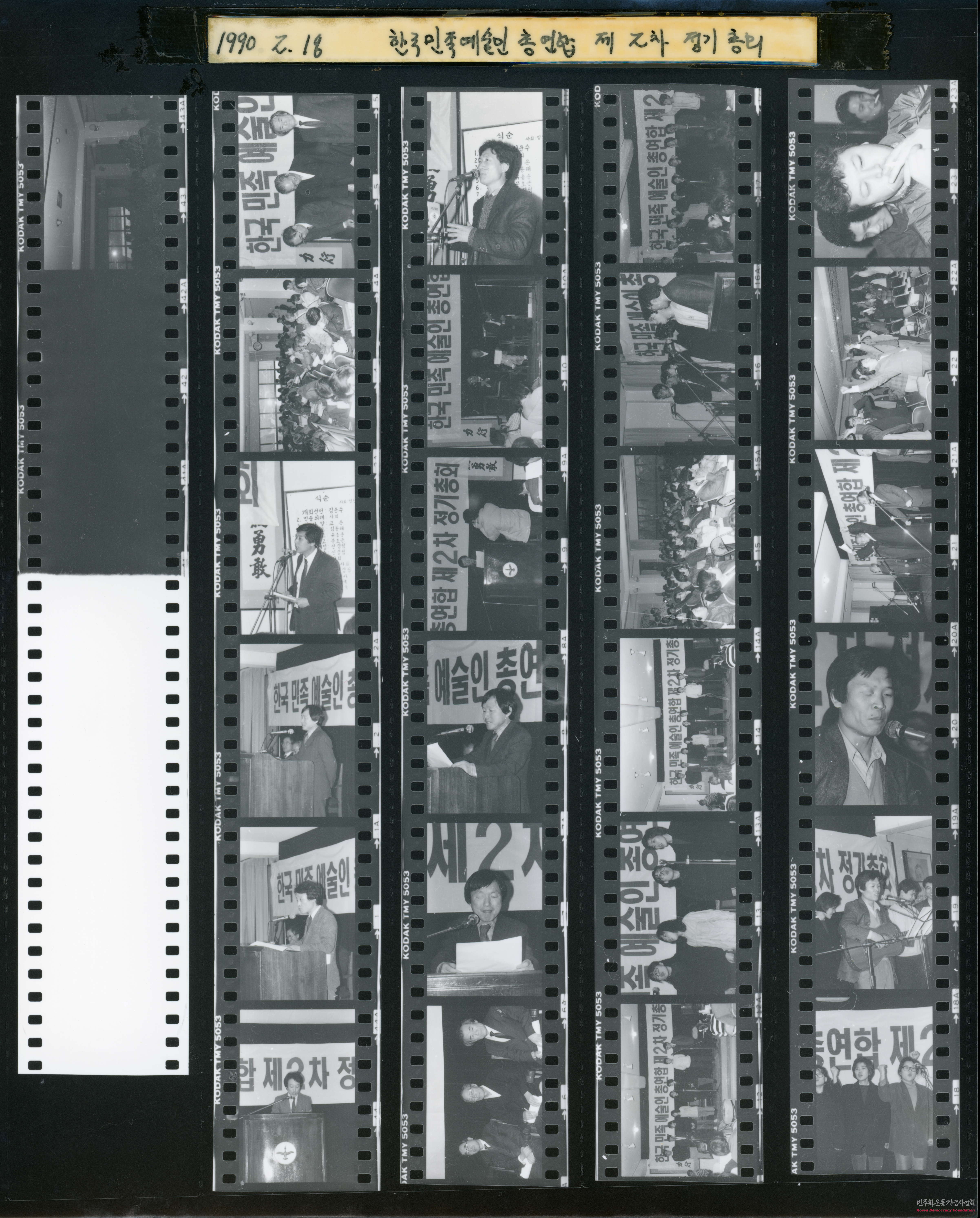 - 1990년 2월 18일 한국민족예술인총연합에서 개최한 제2차 정기총회 필름으로, 회원들이 연설을 듣고, 같이 노래를 부르며, 만세를 부르는 등의 모습이 담겨 있음