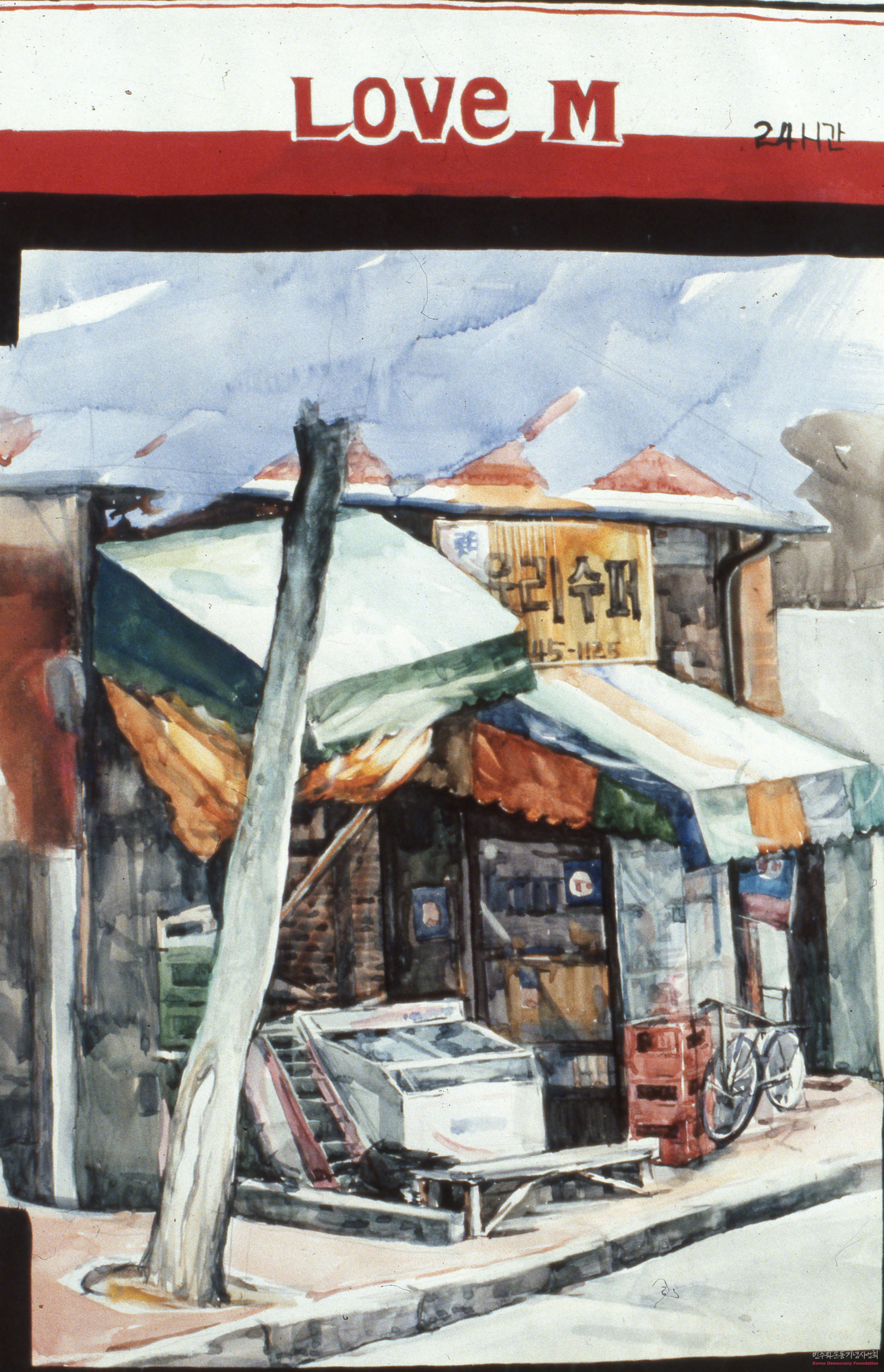 - 장동현 작가의 작품이 담긴 슬라이드 필름으로, 우리슈퍼라는 이름의 허름한 구멍가게의 모습이 담겨 있음