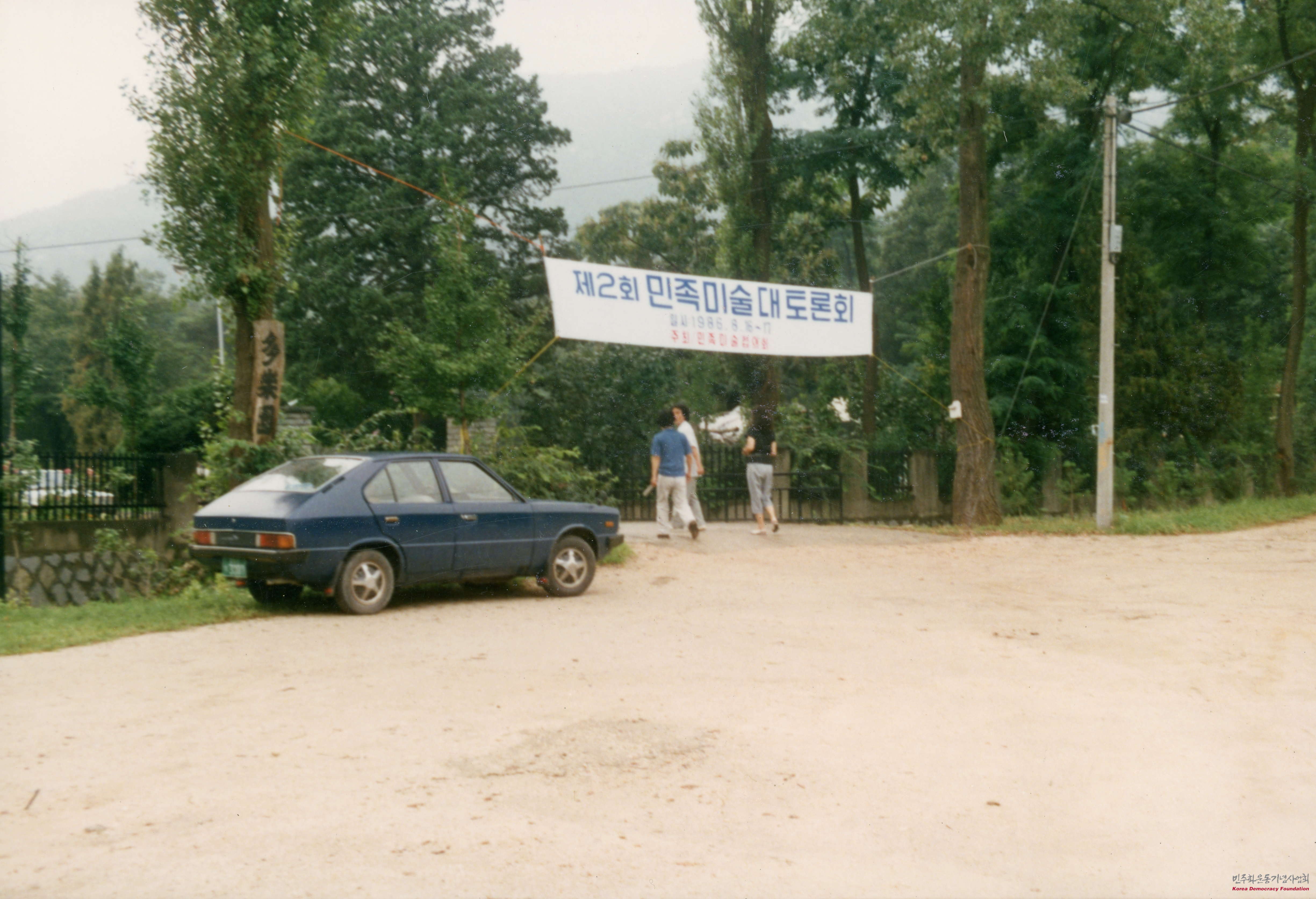 - 민족미술협의회에서 주최한 제2회 민족미술대토론회 사진으로, 제도적 이념을 넘어선 민족미술 등의 주제로 발제하는 모습이 담겨 있음