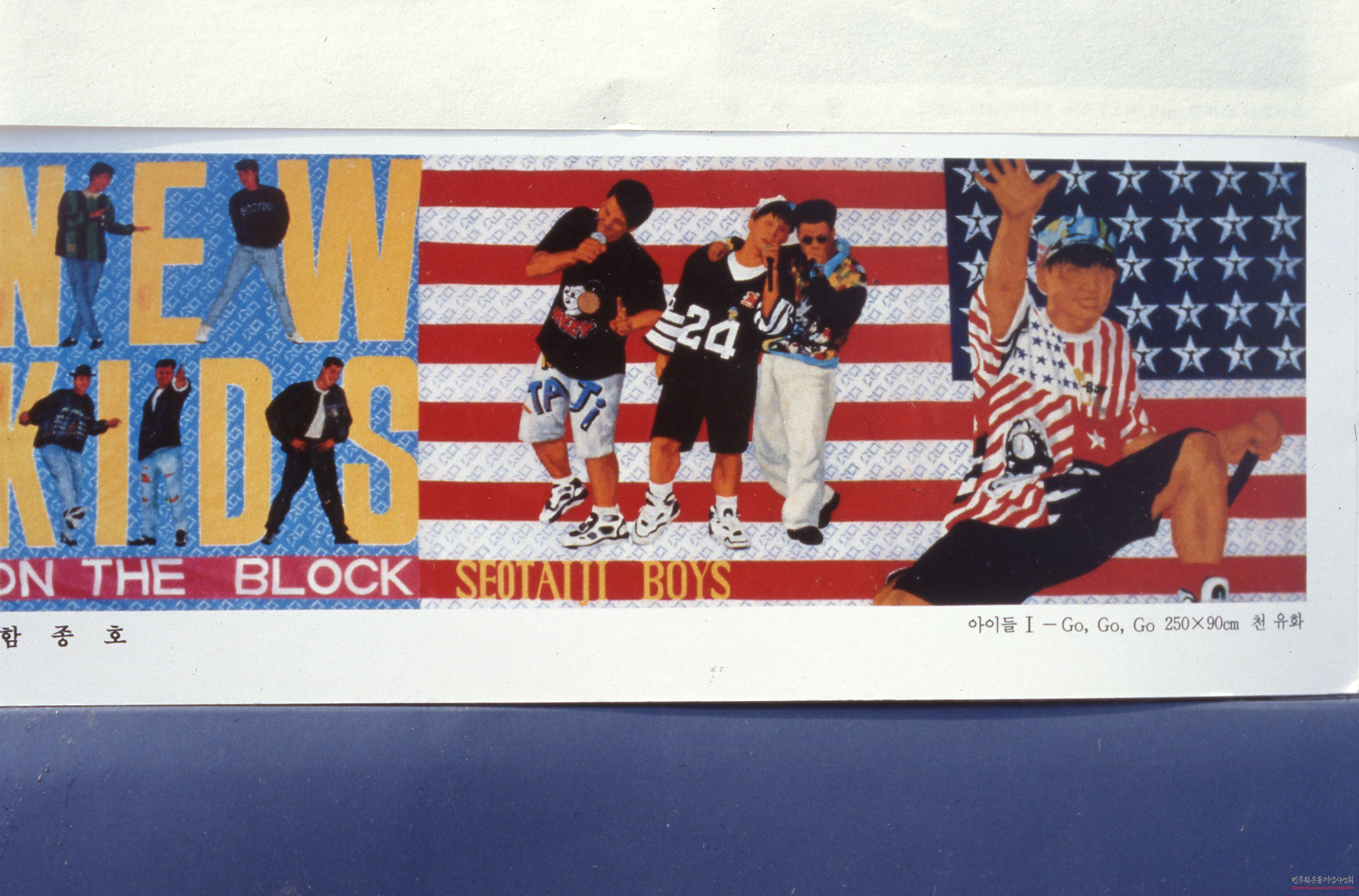 - 함종호 작가의 '아이들 Ⅰ- Go Go, Go', '동학-살아오는 넋'이라는 작품 슬라이드 필름으로, 한국과 미국의 인기그룹인 '서태지와 아이들', 'New Kids On the Block' 을 그린 천유화 형태의 그림과 합성수지, 가발로 만든 작품이 담겨 있음