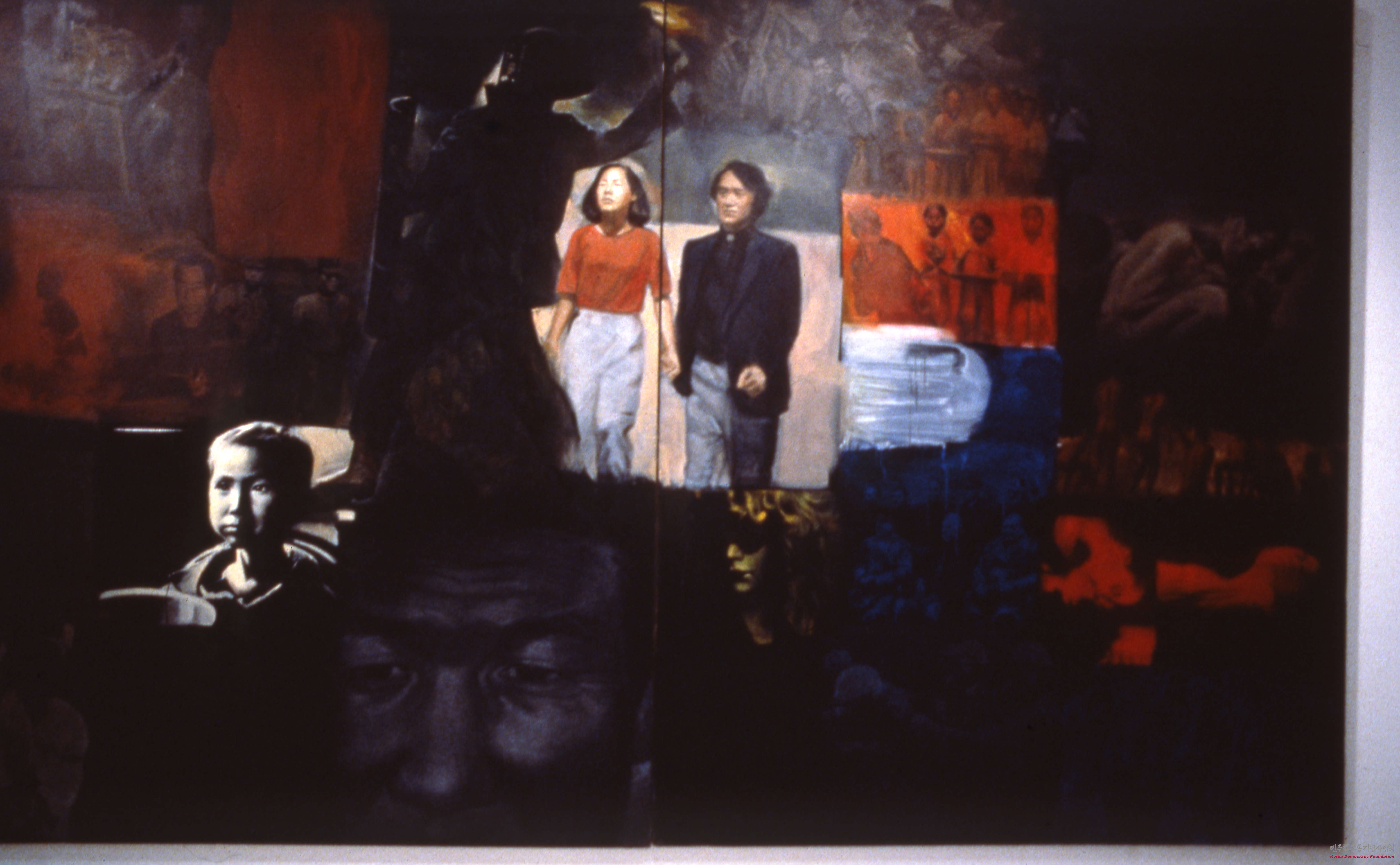 - 김영진 작가의 작품을 담은 슬라이드 필름으로, 노동자들이 '노동해방', '투쟁'이라 적힌 깃발을 들고 집회를 하는 모습, '투쟁 만세'라고 적힌 붉은 머리띠를 두르고 눈을 감고 있는 남성의 모습 등을 그린 그림이 담겨 있음