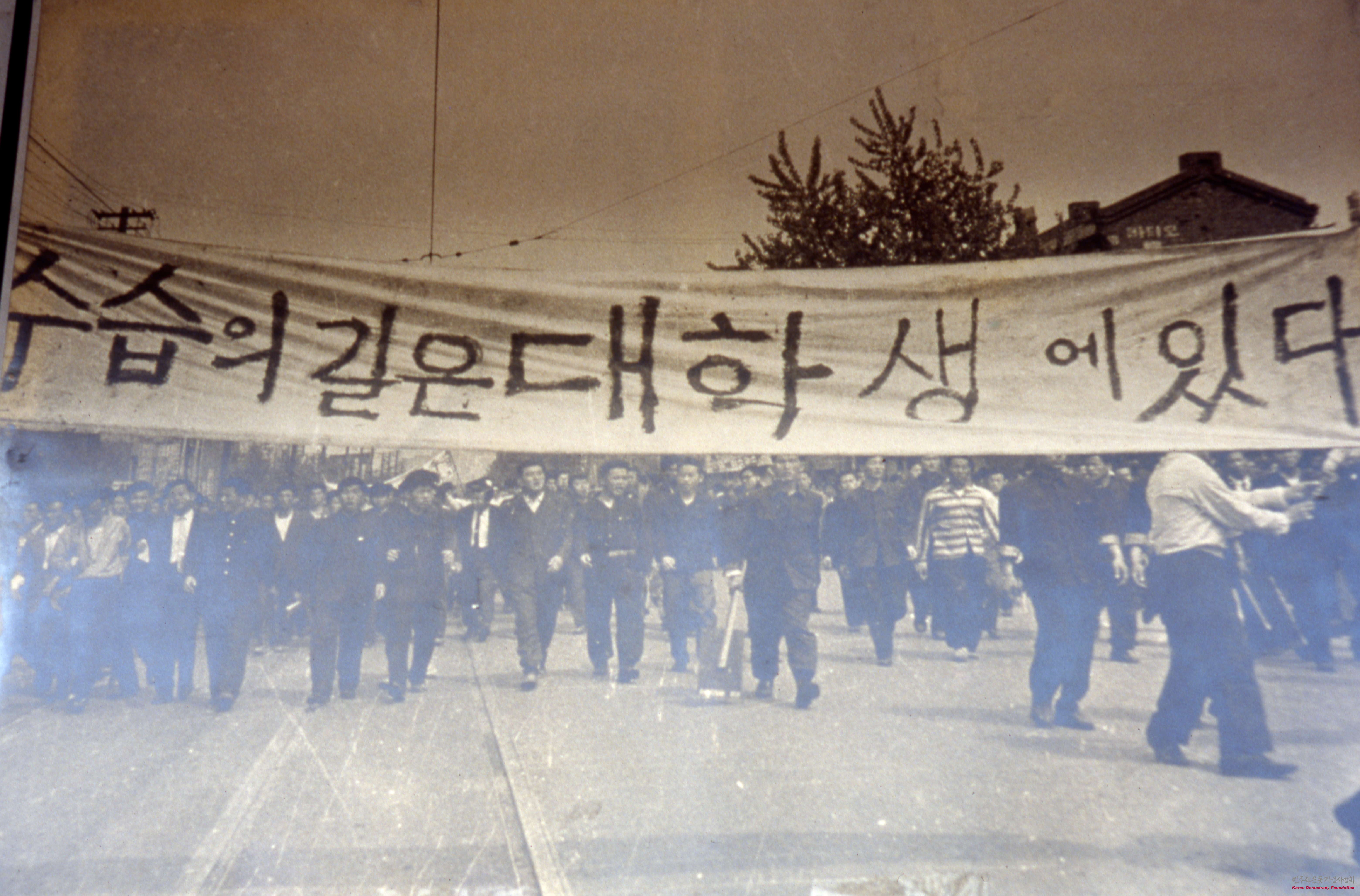 - 3.15 부정선거에 분개한 대학생들이 '수습의 길은 대학생에 있다'라 적힌 현수막을 들고 거리에 나와 시위를 하는 모습 등 4.19 혁명 현장의 모습을 담은 슬라이드 필름