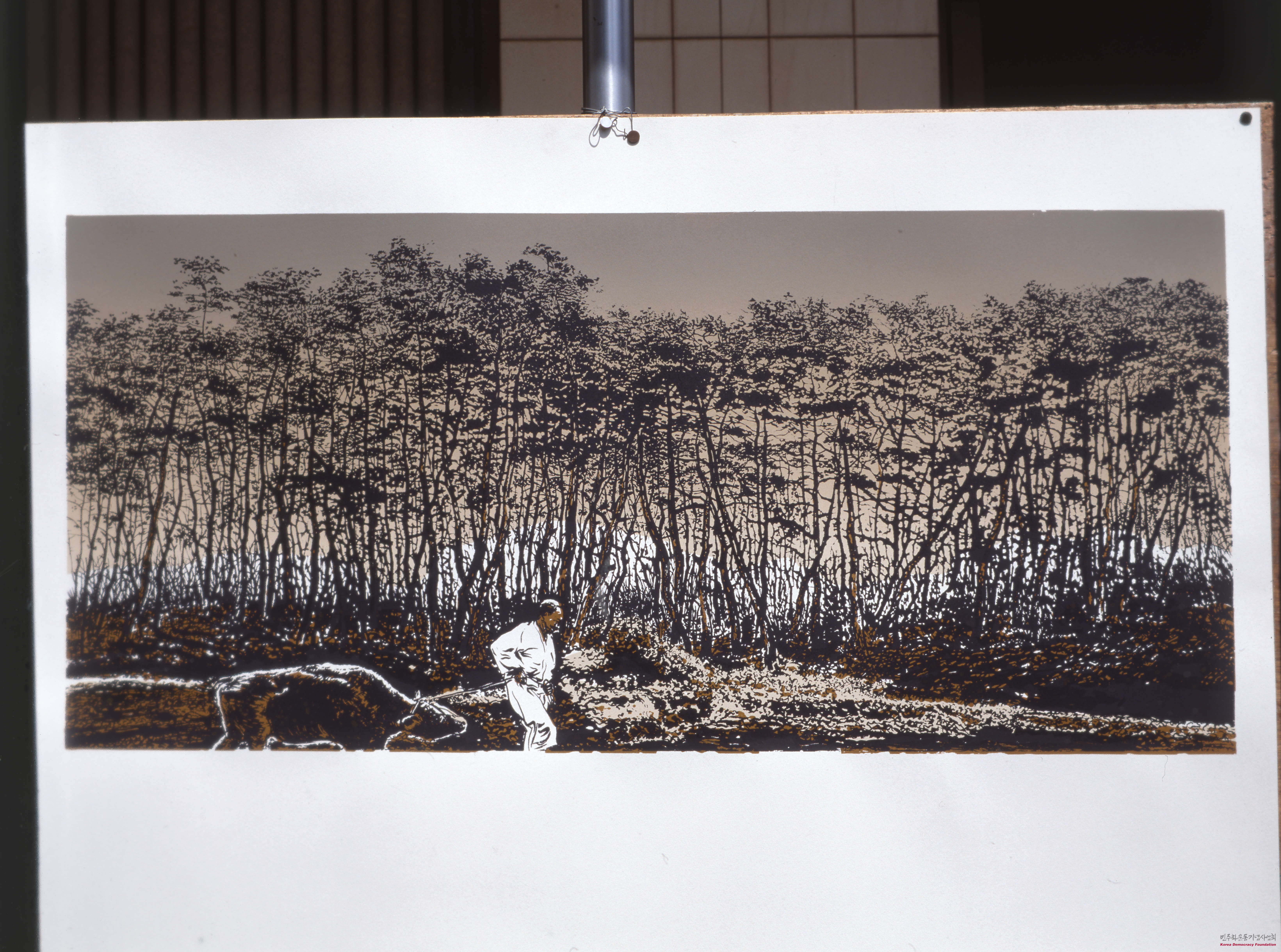 - 한복을 입은 노인이 소를 끌고 솔밭을 지나가는 모습을 그린 정비파 작가의 '솔' 작품을 촬영한 필름