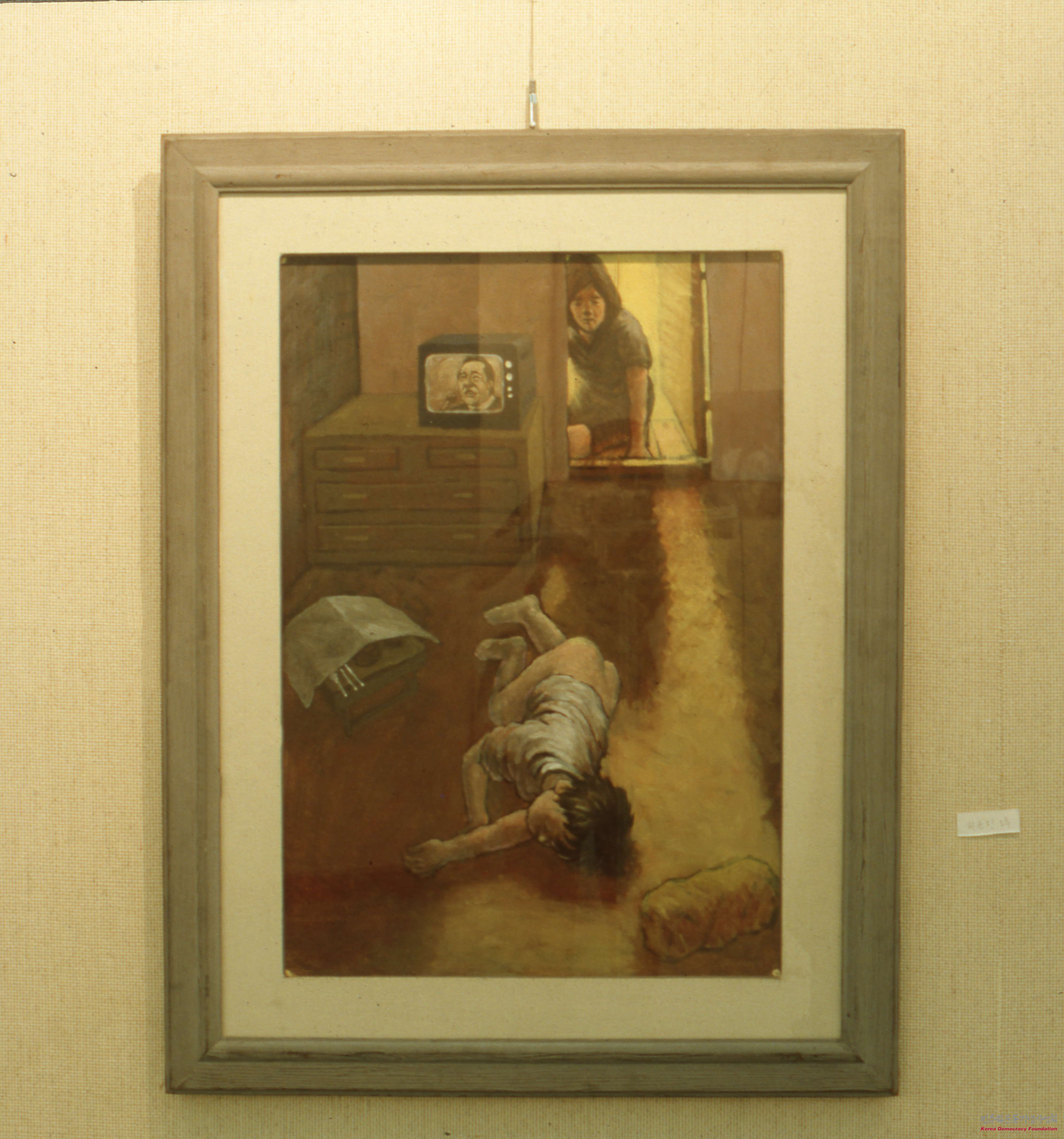 - 황장수의 작품 '피곤한 오후' 외 1점의 슬라이드 필름으로, 엄마가 방문을 열자 TV를 킨채 자고 있는 아들의 모습이 담겨 있으며 한창 피곤할 오후 아들을 신경쓰지도 못할만큼 피로했던 어머니의 표정이 드러남
