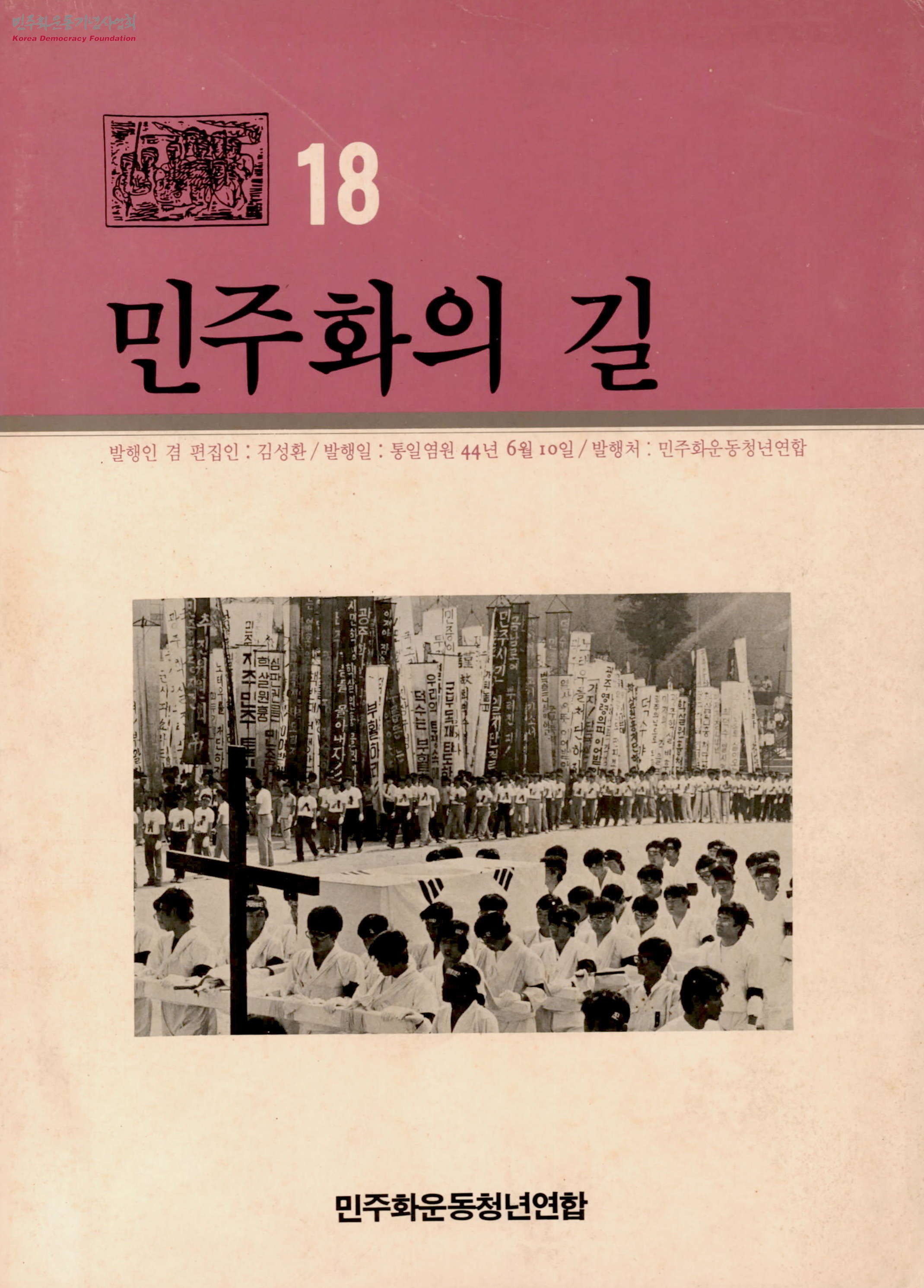 - 민주화운동청년연합에서 발행한 민주화의길 18호로, 목차는 다음과 같음 - 논설 - 특집 : 조국통일운동의 신기원을 열자 - 평가와 반성 : 민족민주운동과 '87대통령선거시기투쟁의 평가와 반성 - 운동론 시리즈 : 지역주민 운동론시론 - 투고논단 : 전국민중운동연합의 건설방향과 현재적 수준 - 시론 : 비핵지대론 - 북소리 : 추악한 미군, 추악한 언론 - 민청련 소식