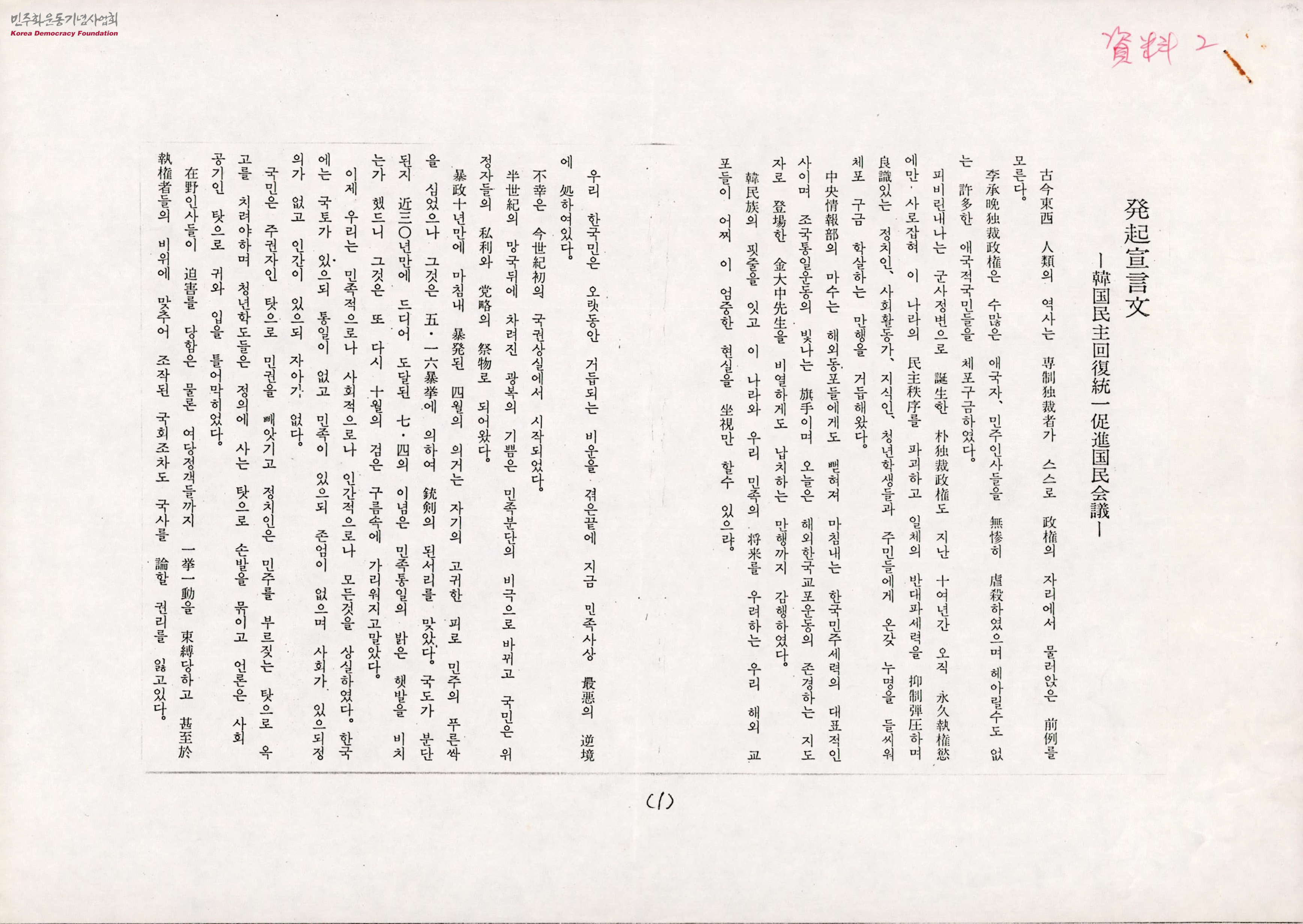 - 한국민주회복통일촉진국민회의