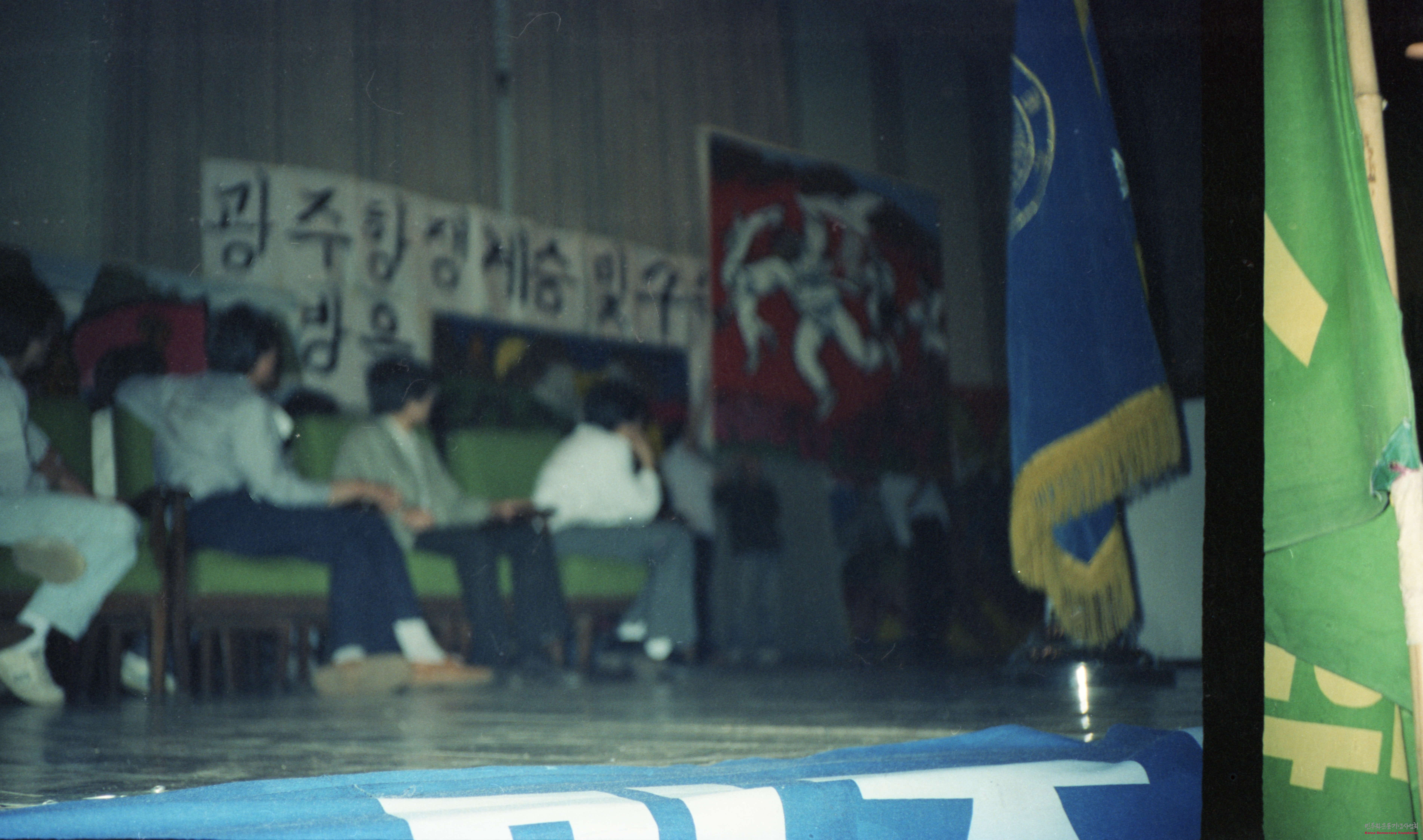 - 광주항쟁계승 및 구속자 석방 관련 활동으로 추정되는 사진필름으로, 단상에 앉아 있는 사람들의 모습과 미술 작품들이 벽에 세워져 있는 모습이 담겨 있음
