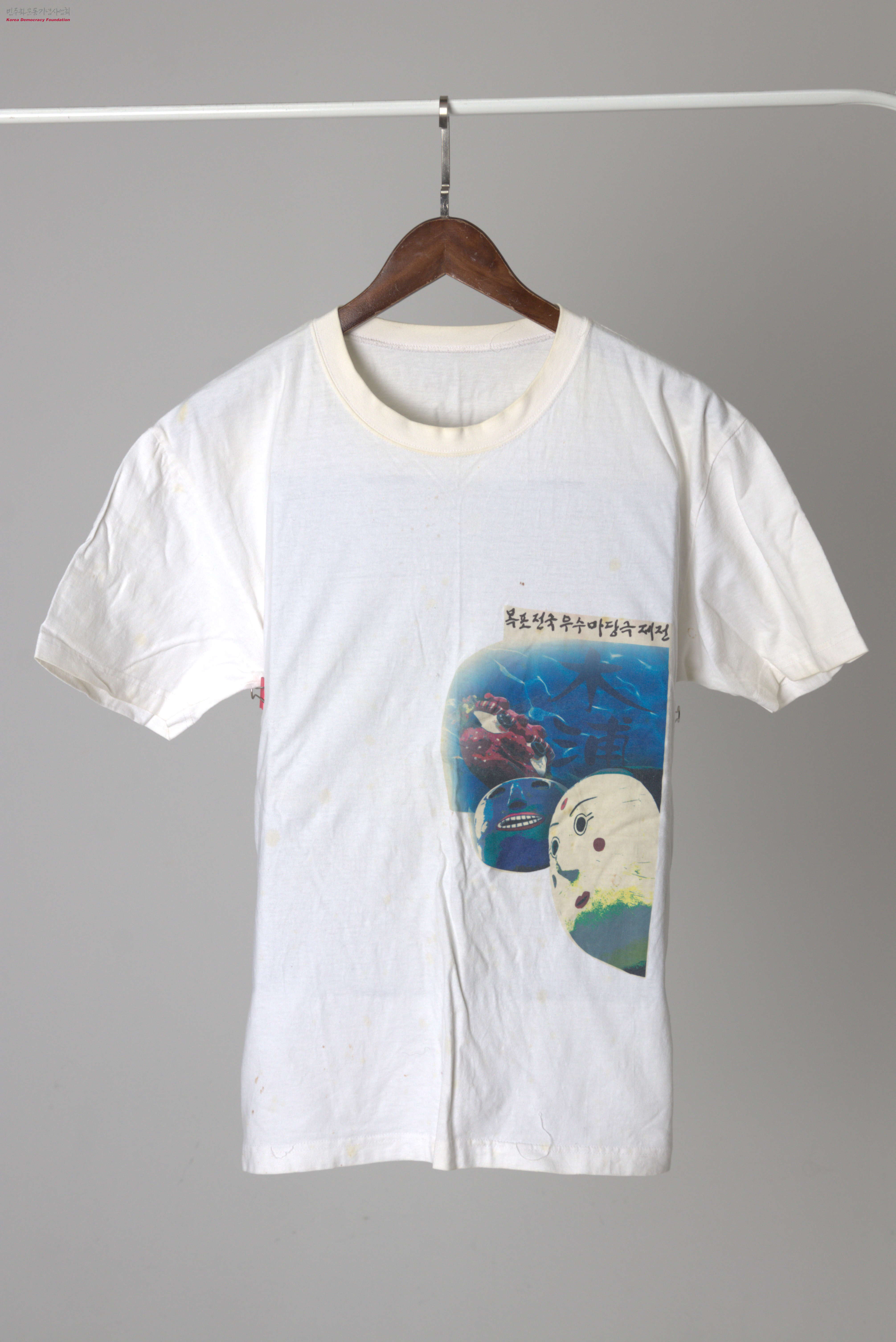- 2005년 7월 22일부터 25일까지 목포 하당초등학교 특설무대에서 진행된 2005 목포전국우수마당극제전 기념 티셔츠로, 앞면에는 '목포전국우수마당극제전' 글씨 및 탈 그림이 삽입되어 있고, 뒷면에는 극단 갯돌의 창립년도 및 '갯돌' 글씨가 삽입되어 있음. 이 행사는 야외극 및 연주 공연 등으로 구성되어 있음