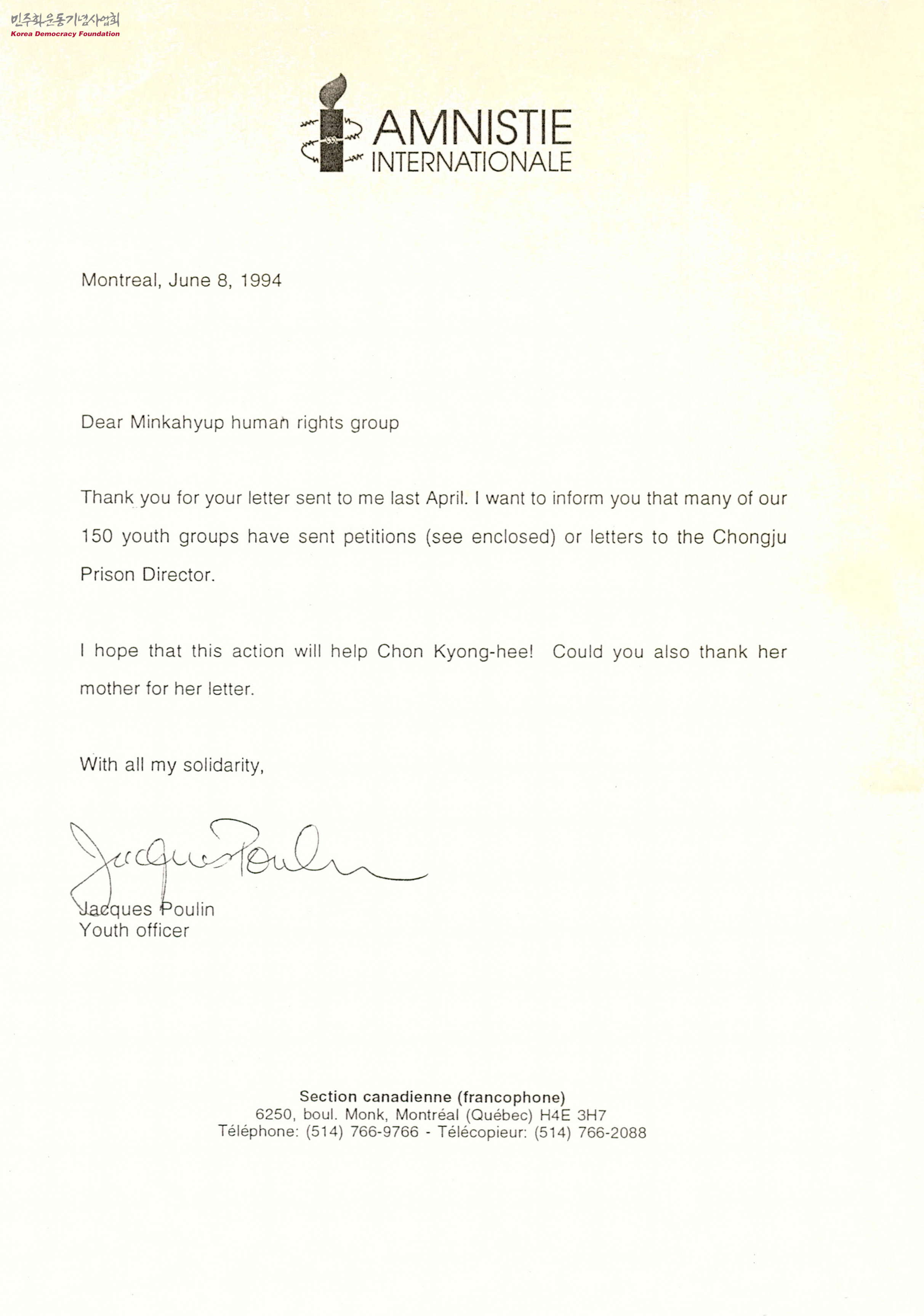 [민가협에게 보내는 영문 편지(1994.6.8)]