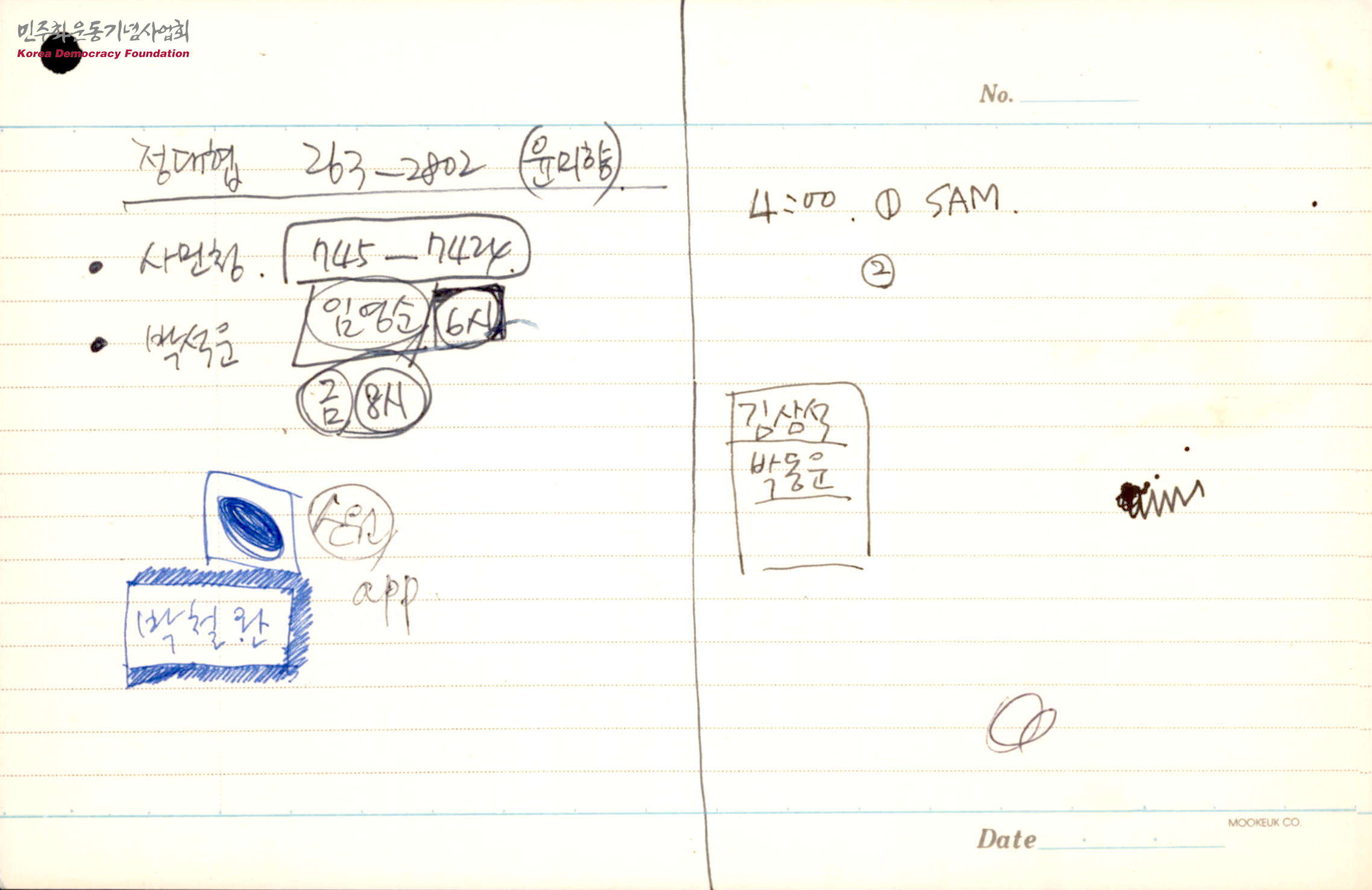 [정대협 사민청 등 전화번호와 약속 메모]