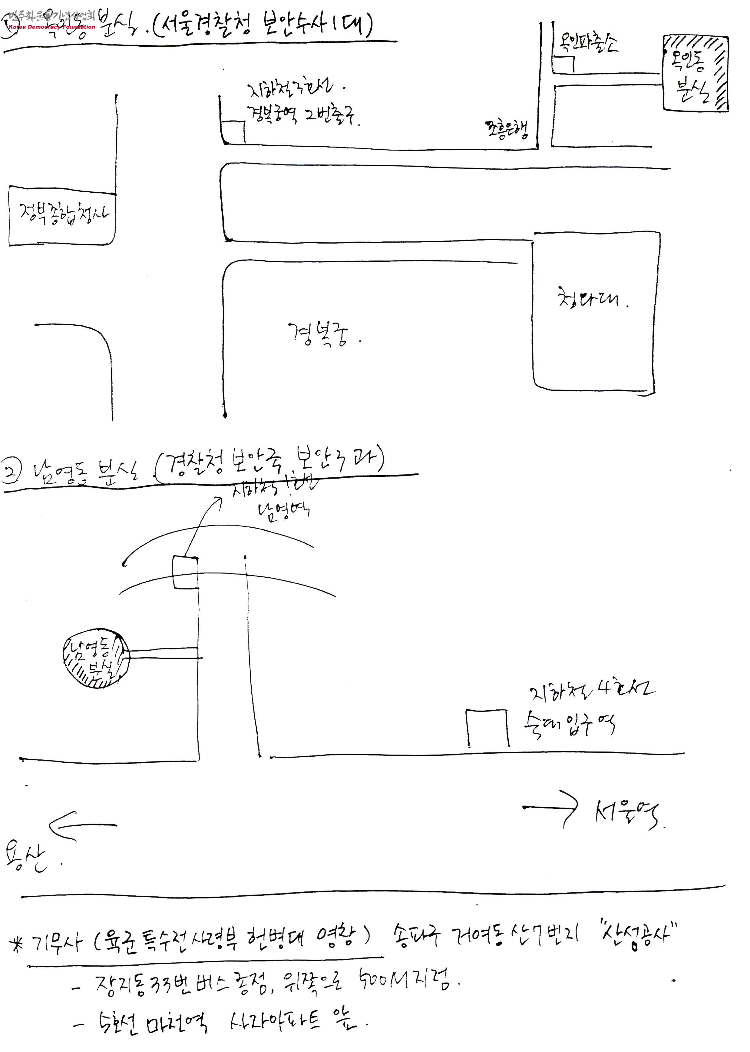 - 대공분실의 약도로, 옥인동·남영동·장안동·홍제동·구로동 대공분실의 약도와 각 대공분실별 배치된 부서명 등의 내용을 담고 있음