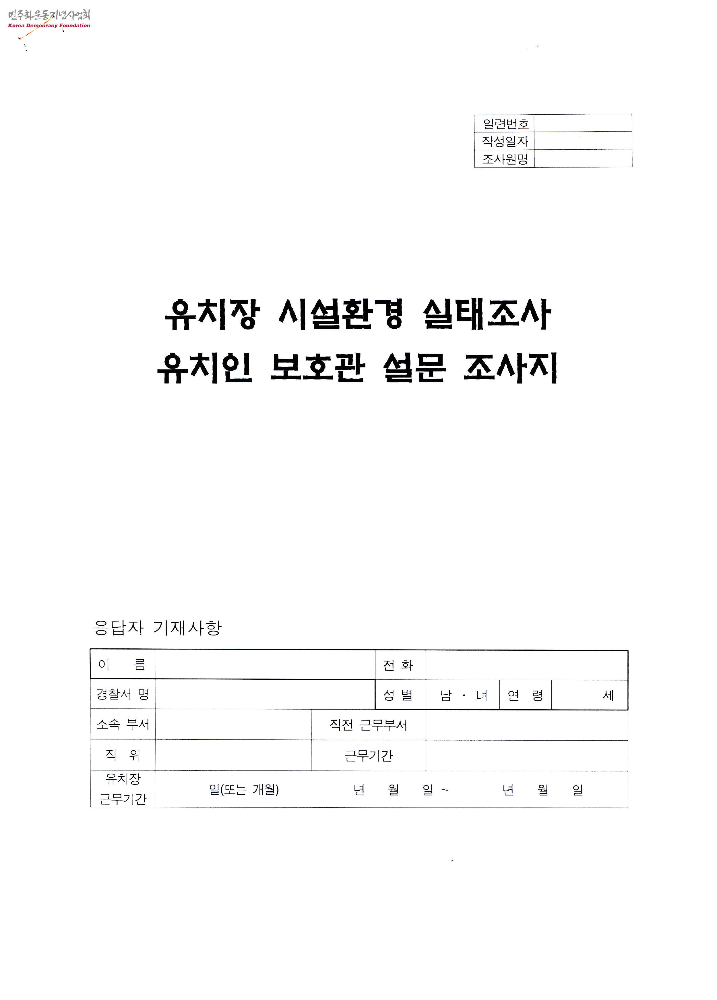 유치장 시설환경 실태조사 유치인 보호관 설문조사지