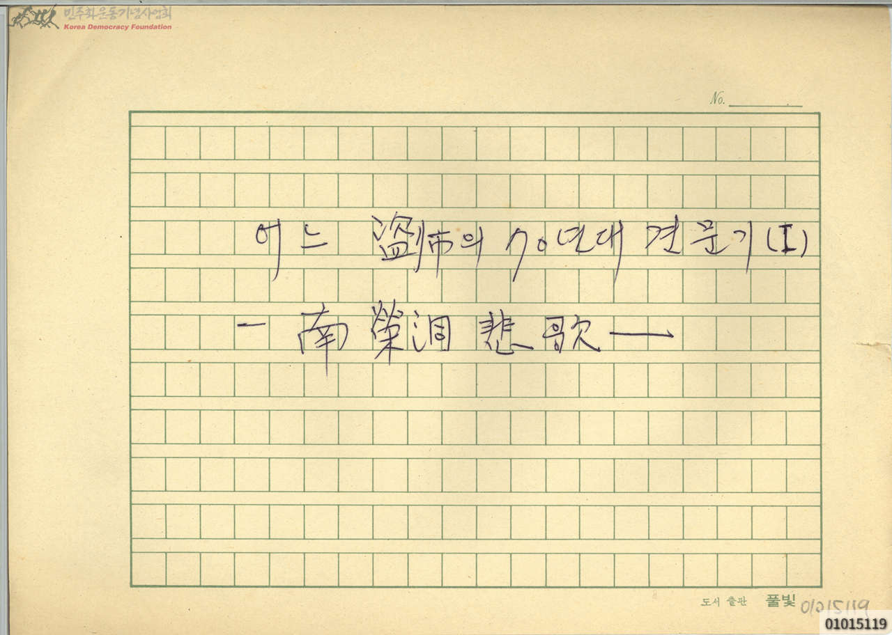 어느 盜师의 70년대 견문기(Ⅰ) - 南營洞 悲歌- [어느 도사의 70년대 견문기(Ⅰ) - 남영동 비가-]