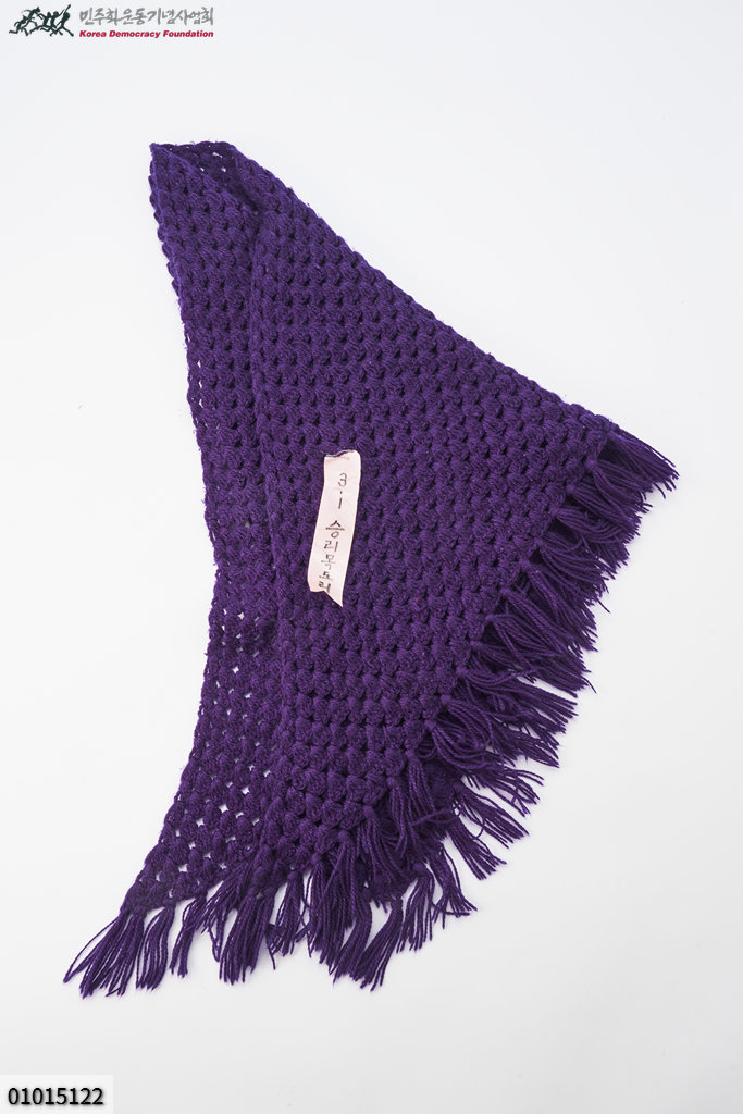 - 구속자 가족들이 고난과 승리를 의미하는 보라색으로 v자 모양의 무늬를 넣어 만든 숄(95*205)