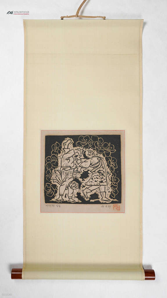 - 양은희의 판화작품으로 작품 우하단에 두렁 낙관이 찍혀있음. 그림이 두루마리에 붙어있는 형태.