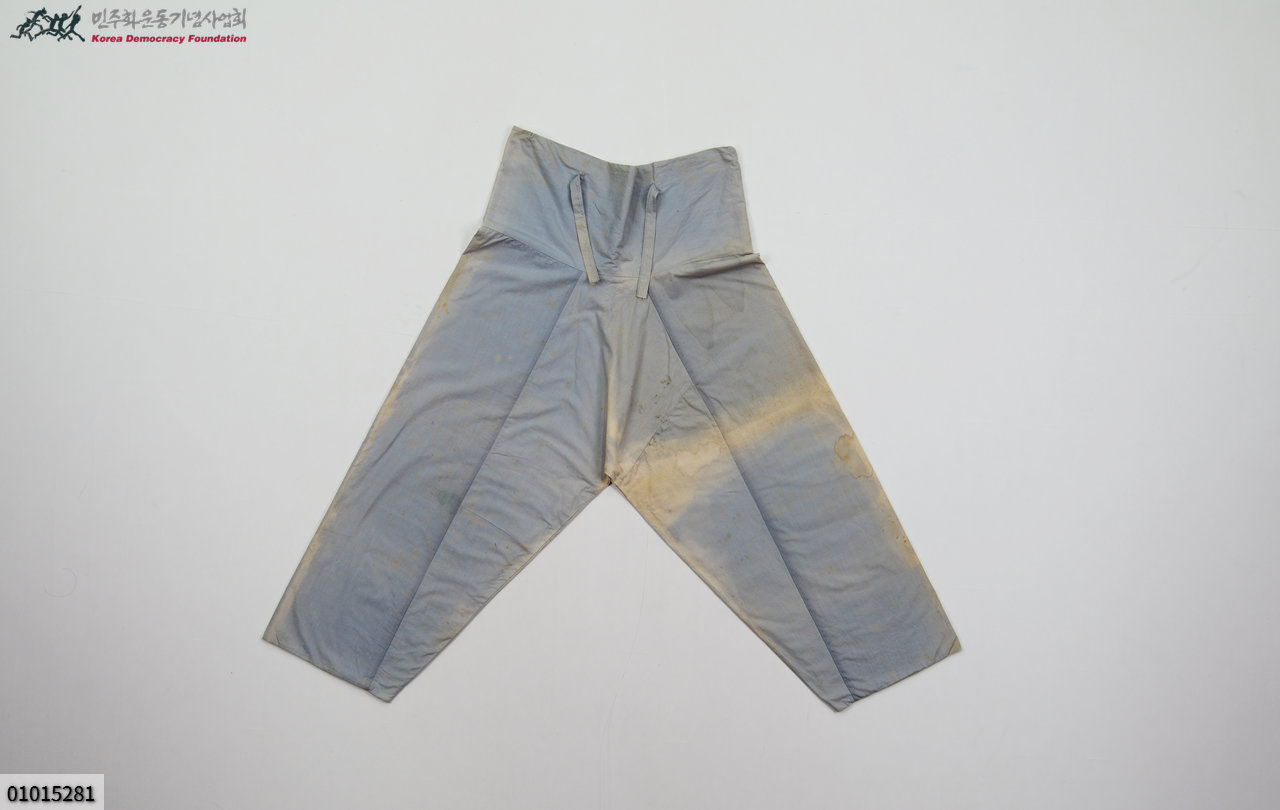 - 회색의 겉감과 융직물 안감을 사용해 만든 수의(등록번호 01015280과 세트)