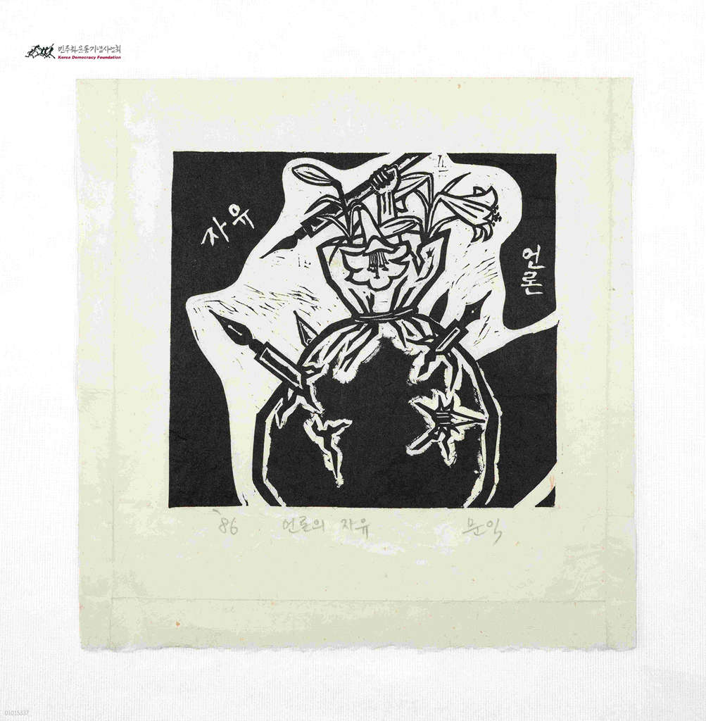 - '자유', '언론' 글귀와 펜이 꽂혀있는 화병 그림