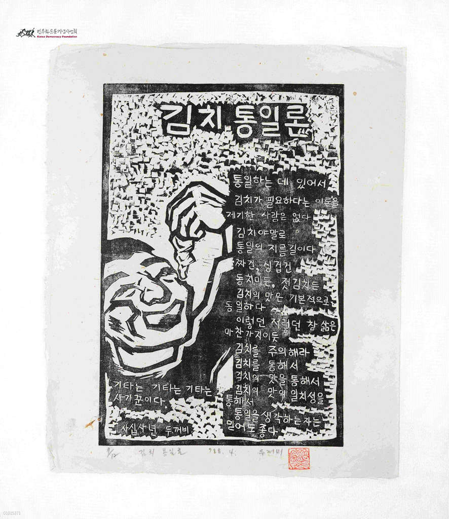 - 김치 통일론' 시와 김치를 먹고 있는 남자 그림