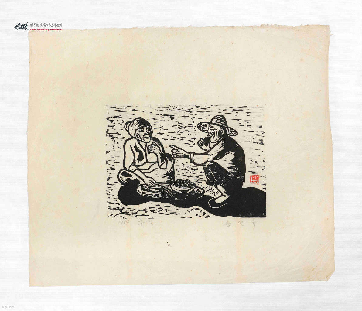 - 새참을 먹고 있는 할머니와 할아버지 그림