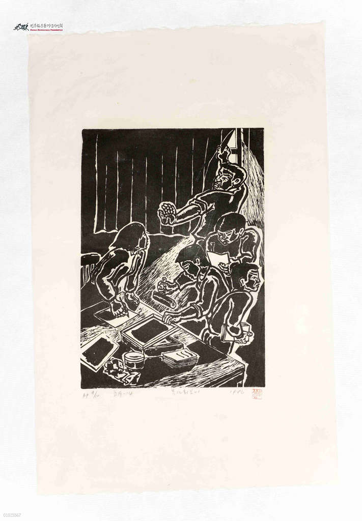 - 어두운 곳에서 유인물을 제작 중인 시민들
