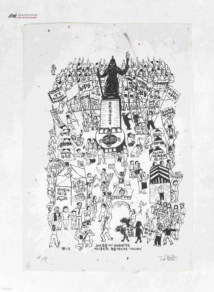 - 이순신장군 동상을 둘러싼 시위하는 사람들