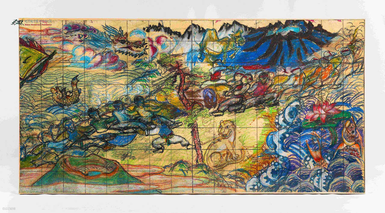 - 산에 있는 용, 물고기, 호랑이, 사람들 묘사