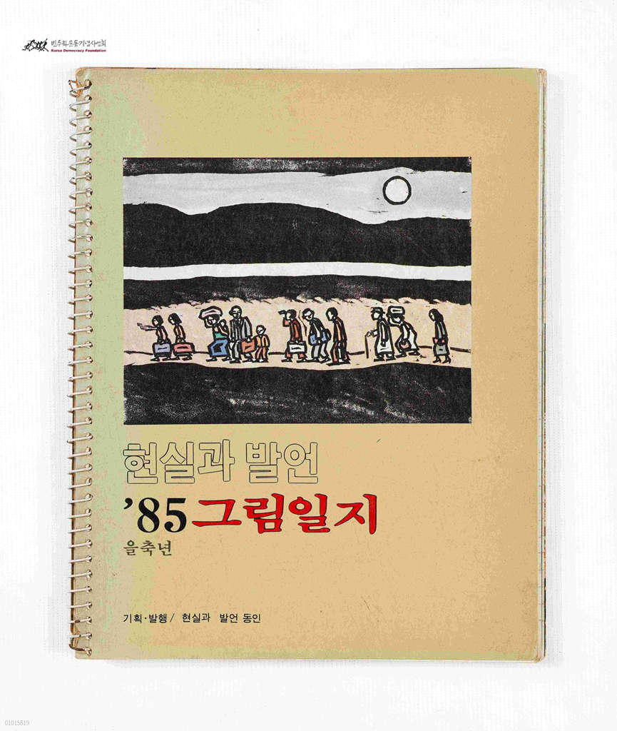- 앞으로 나아가는 모습을 표현한 '현실과발언' 동인들의 사진이 담긴 1985년 그림일지