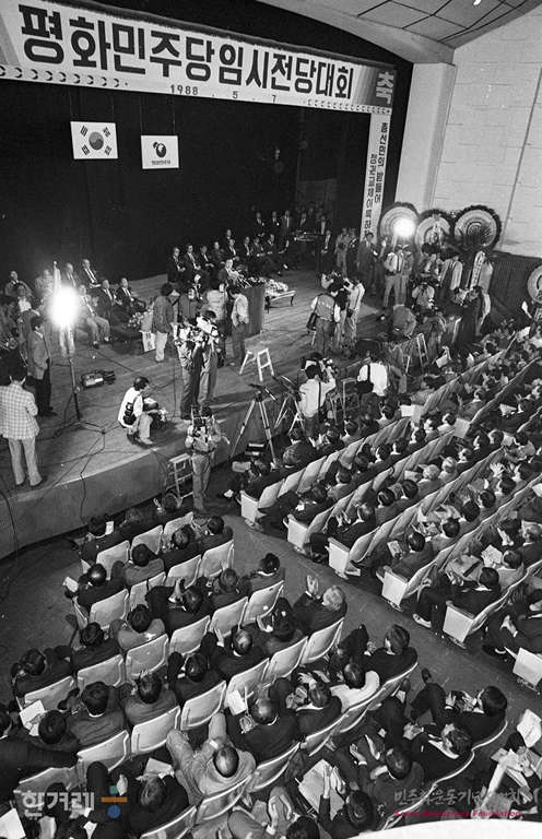- 1988년 5월 7일 평화민주당 임시전당대회가 서울 세종문화회관 별관에서 열리고 있다.