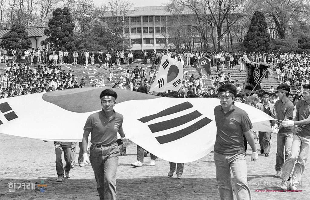 - 1988년 4월 18일 11시 고려대 서울대 연세대 등 서울시내 10여개 대학생 2만여명은 고려대 대운동장에 모여 4.18의거 28주년 기념식을 가진 뒤 고대앞을 출발 수유리 4.19묘지까지 태극기를 앞세우고 가두행진을 벌이고 있다.